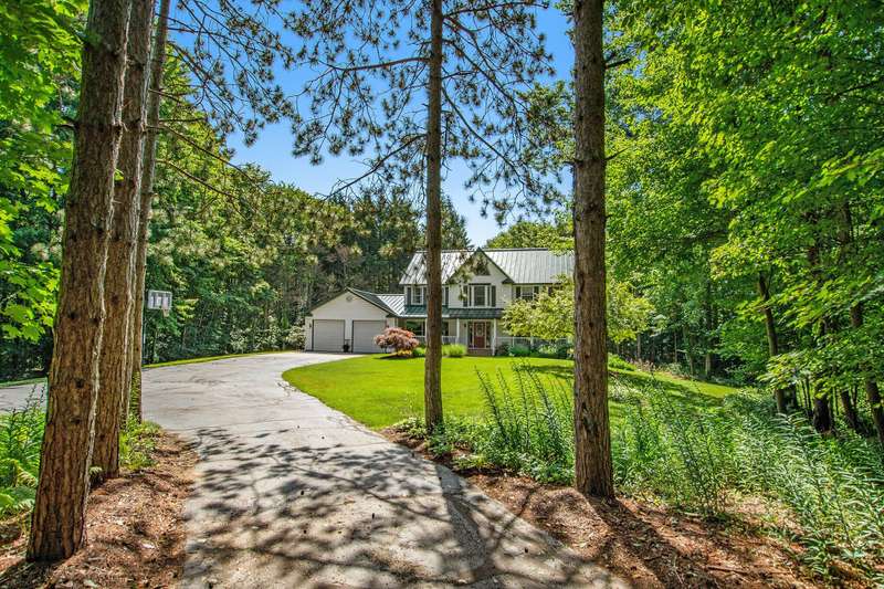Impeccably maintained traditional home on 22+ wooded acres just minutes from South Haven. A paved, hidden drive leads to this private haven with ample parking. Nearly 3,500 sqft of finished space offers 4 beds, 3 baths, hickory hardwood floors, and a cozy family room with wood-burning fireplace. The chef's kitchen features a granite island and Bosch, Electrolux, and Whirlpool appliances. Modern comforts include a 2019 Heil furnace, 2022 condenser, high-speed internet, and surround-sound basement. Enjoy the spacious porch, back deck w/ GreenShield warranty, durable metal roof, and extra-deep attached garage. Pride of ownership throughout this rare, serene retreat. Also listed for the house on 11+ acres.