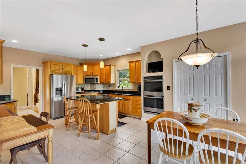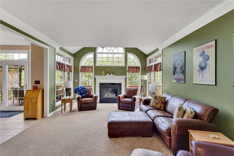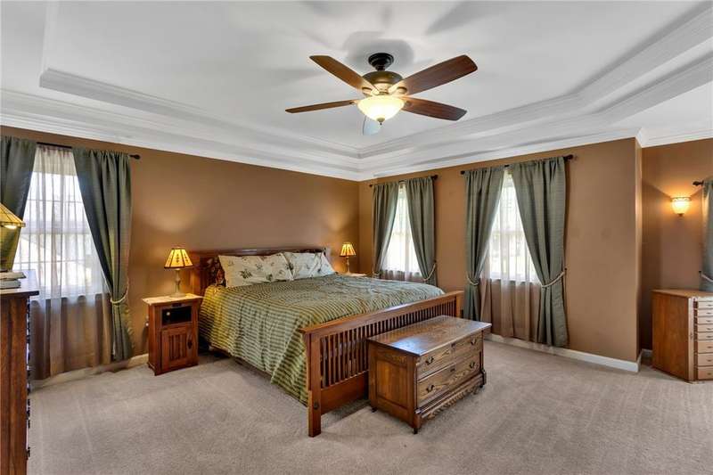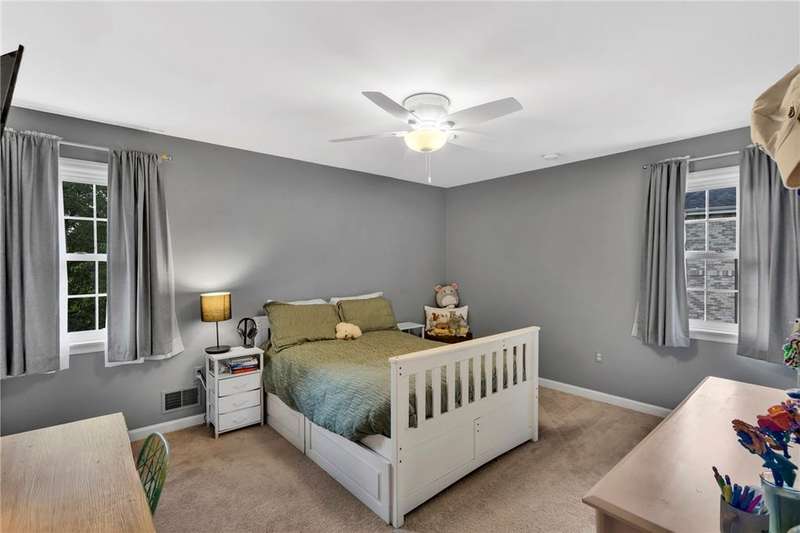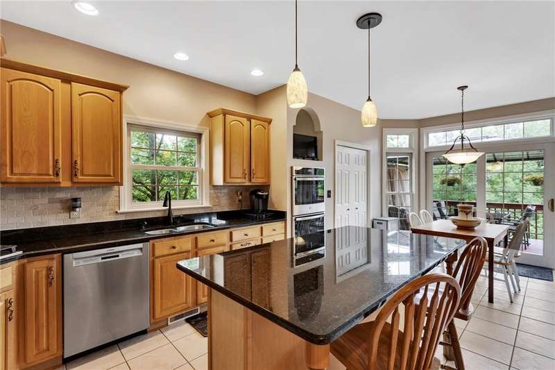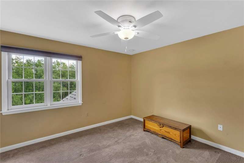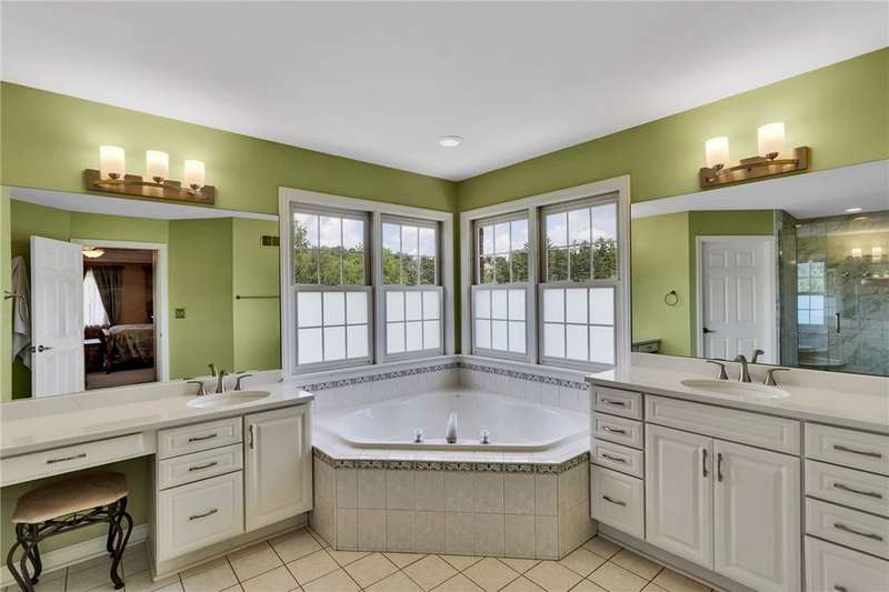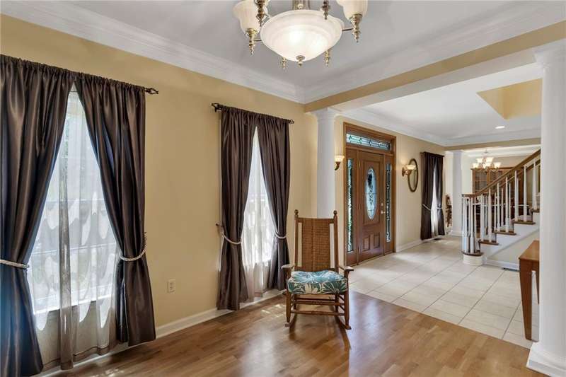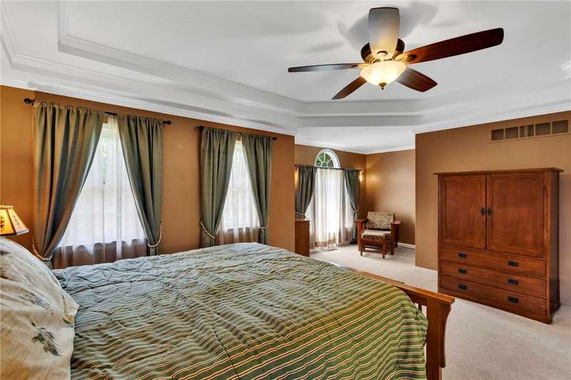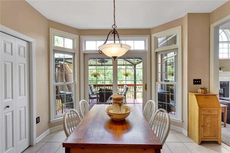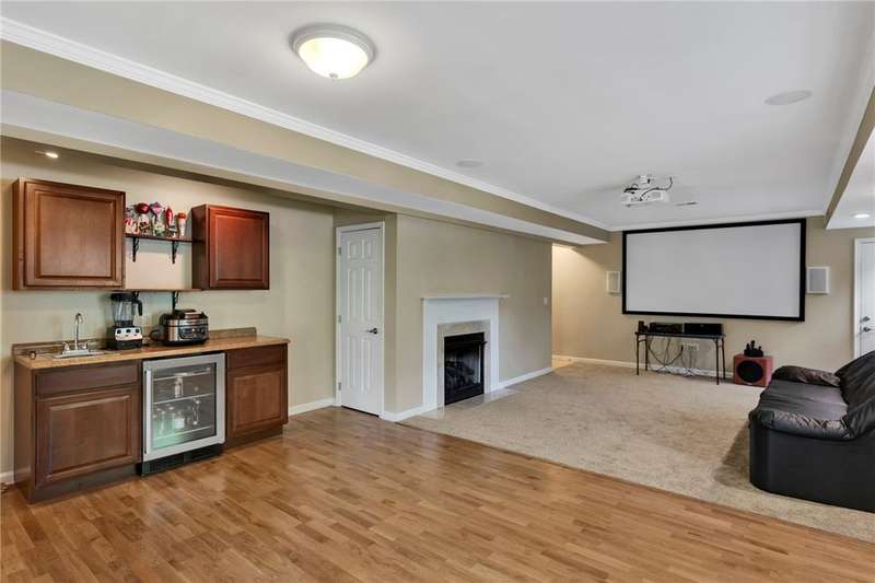 Gorgeous brick home in award winning Ehrman Farms! Located on quiet Middleground Place, this private lot backs to a wooded area. Newer hardwood flooring is impressive! The family room has a gas fireplace trimmed with windows for gorgeous views into the trees. The den is tucked away to provide a quiet workplace and offers built in shelving and views into the rear yard. The kitchen boasts gorgeous cabinetry, granite counters, an eating area, and opens onto a spacious covered rear deck. Upstairs the luxurious master suite is compete with a sitting area, two walk in closets and a bath with a jetted tub and dual sinks. Three additional bedrooms are well sized. The game rm features a wet bar, a theater area, screen, projector and speakers. The fireplace is an added touch! A full bath is a bonus! The game room opens onto a private patio. New a/c, newer furnace & water heater. Community park, walking trails, basketball ct, lake, picnic area, sidewalk community, 96 acres of green space!