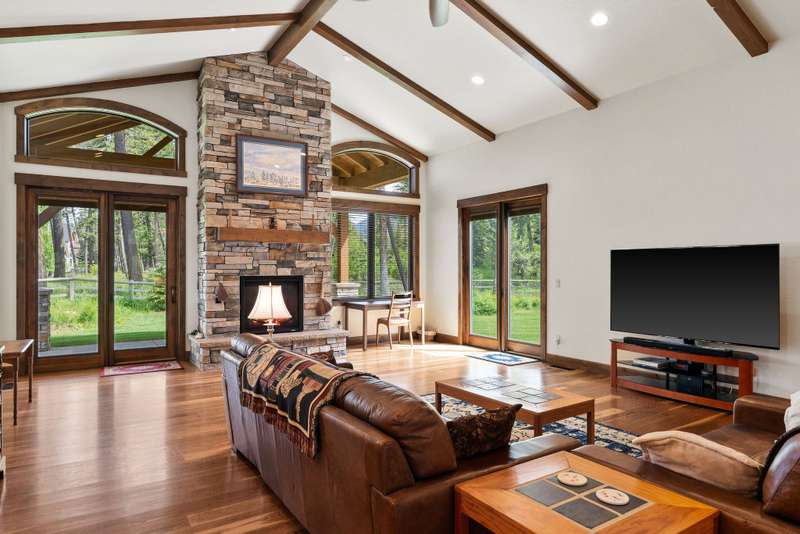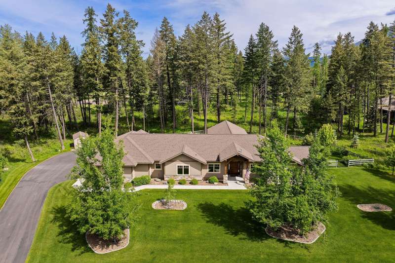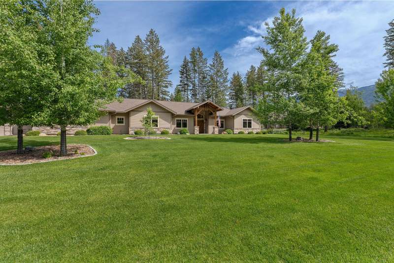 Stunning single-level custom home with breathtaking views of the Swan Mountains! This thoughtfully designed 3BD/3BA home sits on 1.127 acres and offers 3,123 SF of light-filled living space. Each bedroom features its own ensuite bath for optimal comfort and privacy. The open floor plan boasts vaulted ceilings with exposed wood beams, a floor-to-ceiling natural gas stone fireplace, and a chef's kitchen complete with top-of-the-line Thermador appliances, custom Knotty Alder cabinetry, and granite countertops. Enjoy the beautifully landscaped and fully fenced back yard, perfect for pets, with RV parking and an oversized 3-car garage for storage of cars and toys. Located just minutes from Glacier National Park and Flathead Lake, this home offers the perfect balance of luxury, functionality, and Montana beauty. See Feature Sheet in Docs.