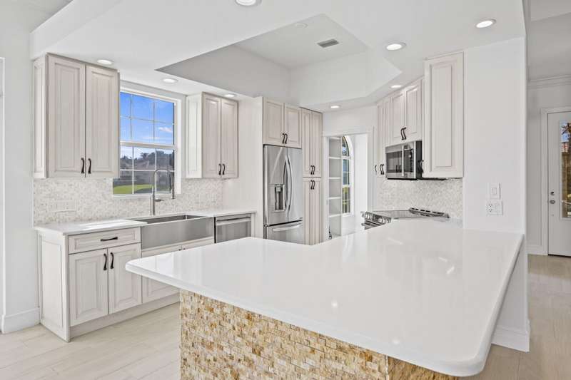 ULTIMATE PRIVACY AND LAKE VIEWS FROM EVERY ROOM ON AN OVERSIZED ENDCAP LOT. Rarely Available and Exceptionally Located, this beautifully maintained 3BR/2BA Divosta home in The Isles at Palm Beach Gardens sits on one of the communitys most coveted lots surrounded by tranquil water views of three sparkling lakes. The expanded lot includes an additional parking pad for 2 cars. Inside, porcelain tile floors flow through an open layout with renovated kitchen, updated baths, and a spacious primary suite featuring pool views. The screened and covered lanai opens to a heated pool and spaAaideal for outdoor living year-round. Additional highlights include impact windows, a whole-house generator, laundry room, and screened front entry. Divosta quality, desirable schools, and a prime