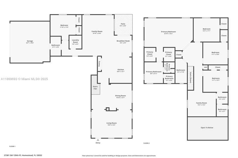 Discover this beautiful home in Mandarin Lakes, offering 5 bedrooms & 4 bathrooms with over 3,100 sq Ft living area. The first floor features a formal dining room, a stylish living room, and a family room overlooking the patio and breakfast nook. 1 bedroom on the first floor with a cabana bath, perfect for guests, while an upstairs loft provides a retreat for kids. Recent upgrades include brand-new appliances tile flooring on the first floor & luxury vinyl plank (LVP) flooring on the second. With a serene canal view and ample space for a pool—permitted by the HOA—this home is ideally located near the turnpike, Homestead Air Base & Baptist Hospital. Residents benefit from a clubhouse with a resort-style pool and HOA amenities, including cable, internet, lawn maintenance, & security patrol.