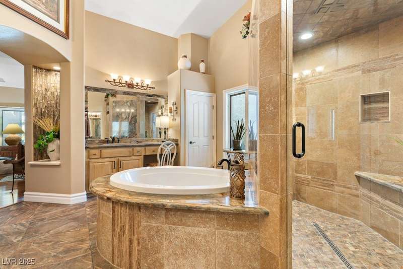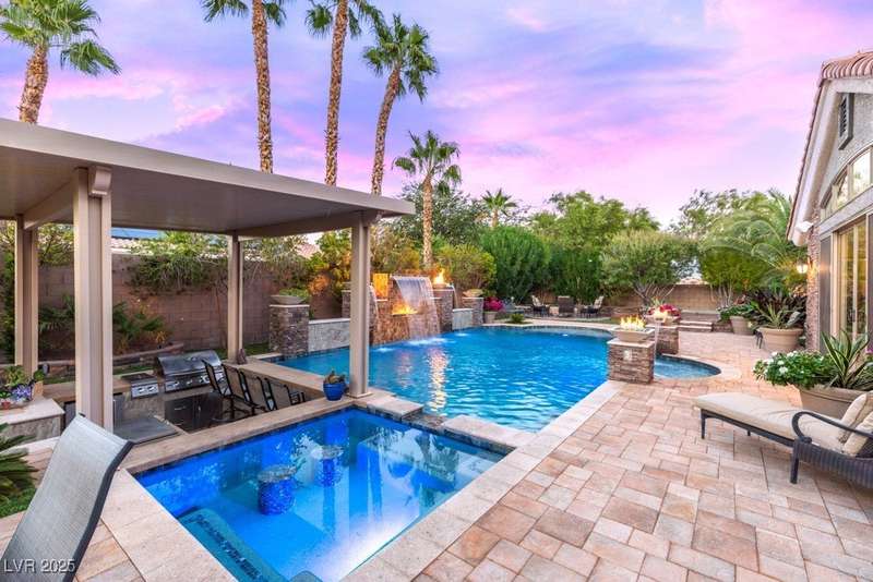 Stunning northwest home that truly checks every box. This property features a massive saltwater pool, both above-ground and built-in spas with bar seating, and a sunken outdoor kitchen—perfect for entertaining with multiple sitting areas and ultimate privacy. No two-story neighbors or windows looking into the backyard. Inside, the home showcases a complete renovation with custom tile work throughout, plantation shutters, and NEW Anderson windows. The home was reconfigured to add a stunning oversized slider bringing in tons of natural light and creating an incredible indoor-outdoor feel. The layout includes a double primary setup and a large addition offering flexible living space. The primary bath feels like a spa retreat with an expanded double-entry shower. All appliances stay, and furnishings are optional. The home also includes a butler pass, central vac system, and a transferable AHS home warranty for peace of mind. Every upgrade thoughtfully executed—this one truly stands out.