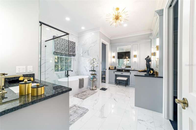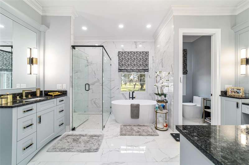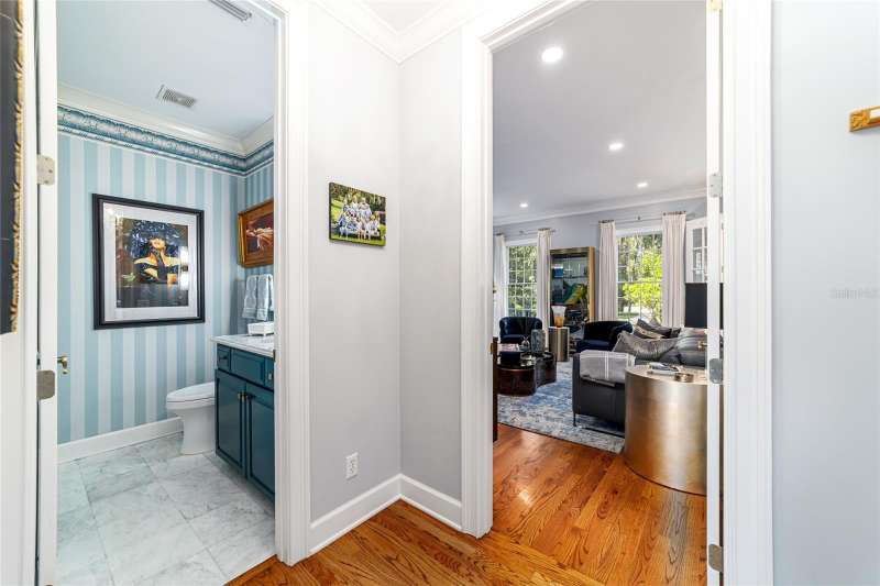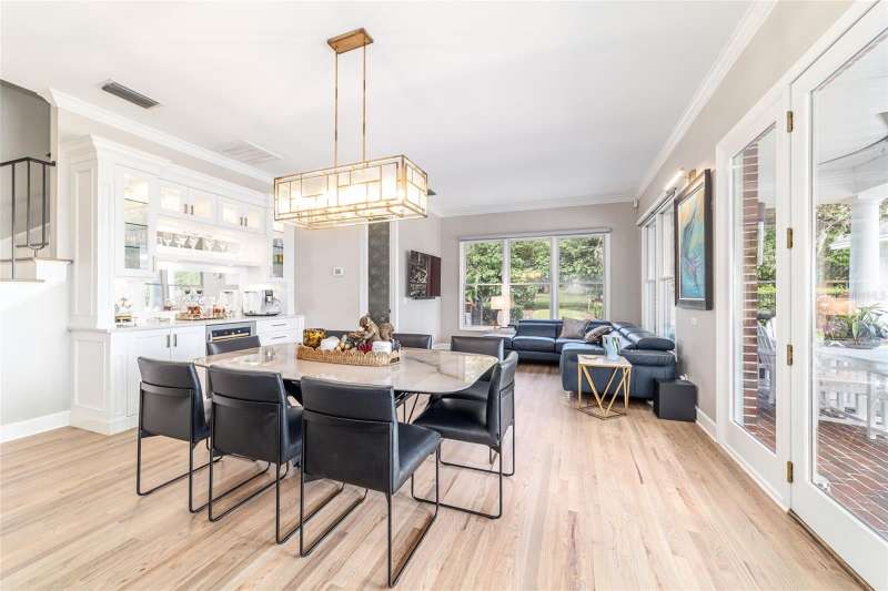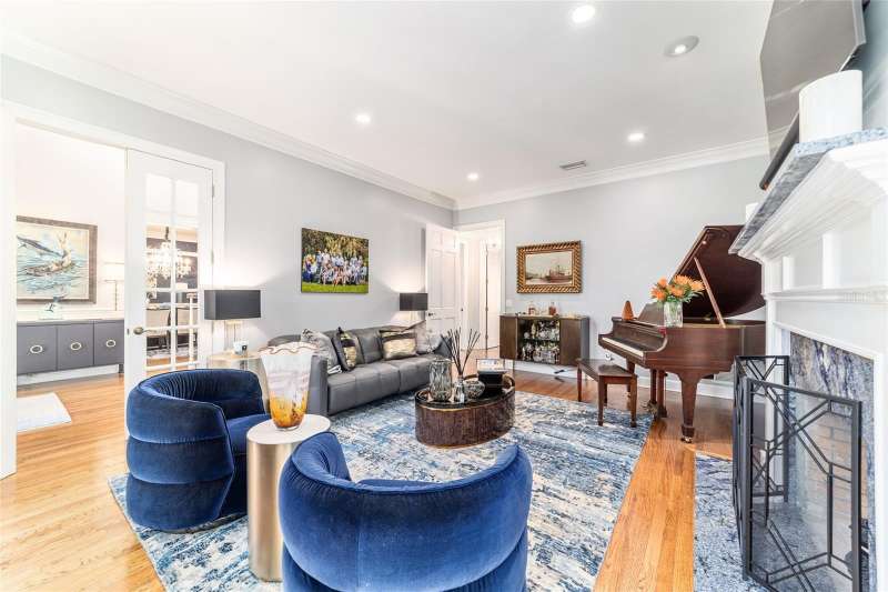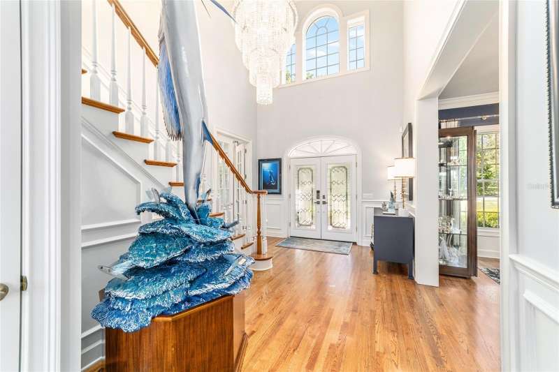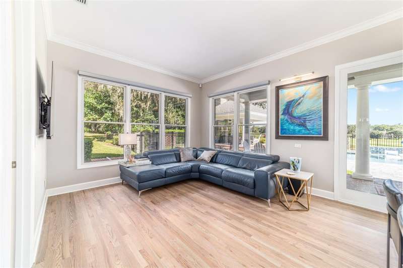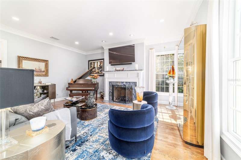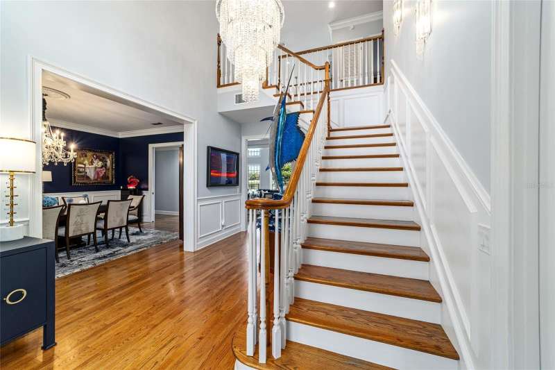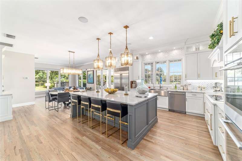 This stunning two-story red brick estate offers timeless charm, modern updates and breathtaking golf course views overlooking the 15th hole and beyond. Featuring 4 bedrooms, 3 full baths and 2 half baths, every space has been thoughtfully designed for everyday living. Step through the foyer and you’re greeted by a custom staircase leading to the second floor of the home. The main floor features a formal living room with a fireplace and mantle that have been beautifully updated, a spacious formal dining room and a family room that extends 2 stories, where walls of windows fill the space with natural light. A second wood-burning fireplace framed by custom built-ins anchors this inviting gathering space. The gourmet kitchen, fully remodeled in 2018, truly is the heart of the home with white wood cabinetry, gorgeous granite countertops, double ovens and a thoughtful layout that opens to a breakfast area and cozy sitting room, complete with a built in cabinet and beverage bar. The refinished hardwood floors flow beautifully throughout this space, extending to the staircase that leads to a large bonus/media room. The primary suite, completely redesigned in 2023, has exquisite finishes and a spa-inspired bath. Up the main staircase, you’ll find a loft area with a built-in desk and three additional bedrooms, with two sharing a Jack-and-Jill bath and one with a private ensuite, both featuring updated showers and modern touches. Outdoors, enjoy your own private oasis. The saltwater pool, fully redone in 2024 with new marcite, stone and updated pool equipment is surrounded by beautiful bluestone pavers and is fully fenced with a gate for privacy. Entertain year-round under the 25' x 25' pavilion, complete with a wood-burning fireplace and TV hookup, making it the ultimate space for weekend gatherings or quiet evenings by the fire. In addition, the grounds are beautifully landscaped and enhanced by extensive landscape lighting. Additional highlights include an air-conditioned and tiled 3-car garage, perfect for a workshop or home gym. The laundry room update (scheduled for completion December 2025) will feature custom cabinetry matching the kitchen for a cohesive, elevated look throughout the home. This home also has a tankless hot water heater, whole house generator, brand new sub zero refrigerator and all electric drapes. Don't miss this one in the beautiful Country Club of Ocala.