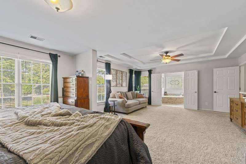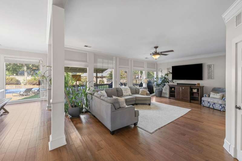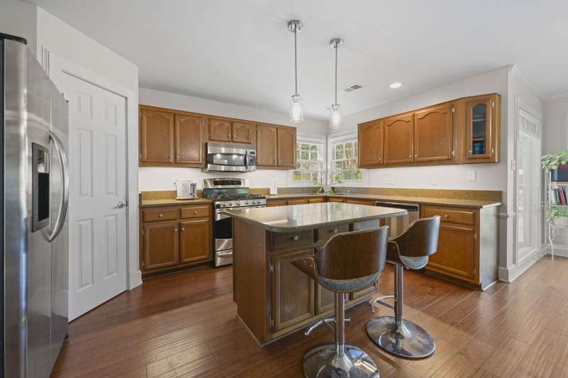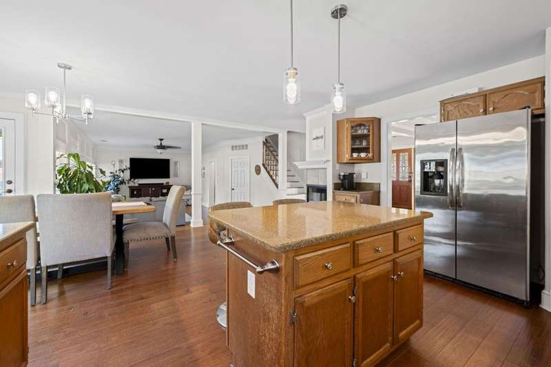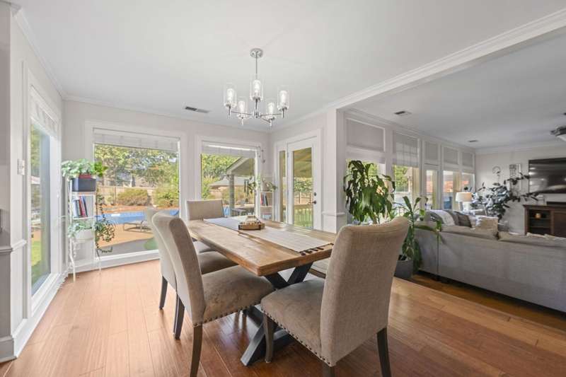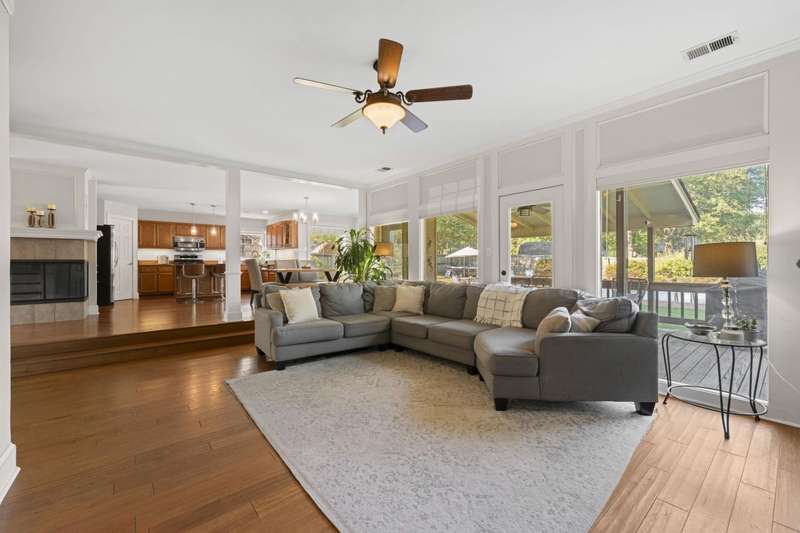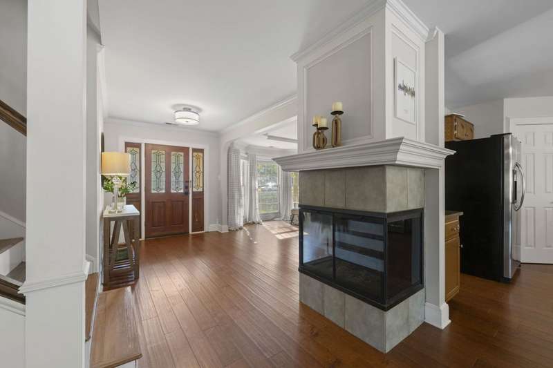 Welcome Home! This beautifully updated 4 Bedroom, 2.5 Bath residence offers inviting living spaces with engineered hardwood throughout the main level. A double-sided gas fireplace adds charm, while the family room features a wall of windows overlooking the big deck and sparkling pool with plenty of room to entertain. All bedrooms are up, including the oversized Primary Suite (26x17) with a renovated bath. Kitchen features quartz, gas cooking & SS appliances. Fresh interior paint throughout! Walking distance to CES, Cox Park, and Community Center. Roof replaced 2019