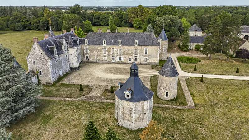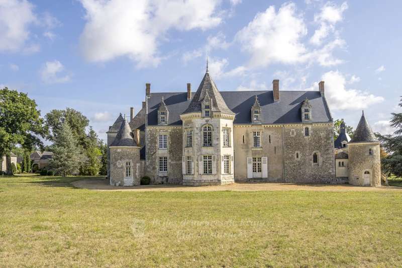 This charming 750 sqm château with over 800 sqm annexes in a 12 ha park, is located in an unspoilt environment on the edge of the Anjou and Touraine regions. Dating from the 15th century and progressively remodelled up to the 19th century, it is accessed by means of a long drive and features moats, four 17th century corner towers, a dovecote and a consecrated chapel. It includes bright panelled reception rooms commanding magnificent views of the grounds planted with majestic centuries-old trees, and eleven bedrooms. With extensive annexes (one of which is currently rented). Three wells. Great potential for a tourist and events business. Further land may be acquired at extra cost.