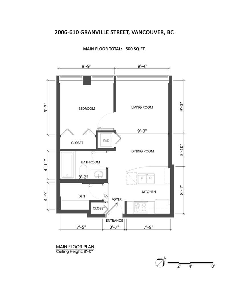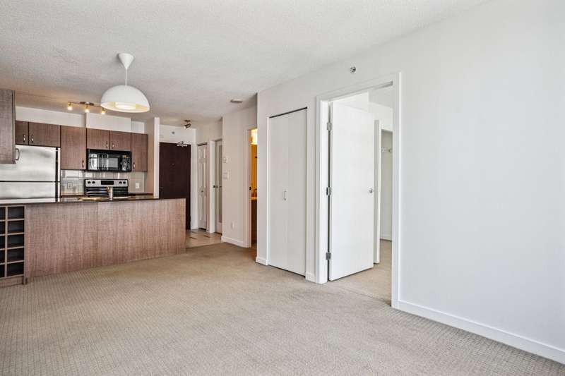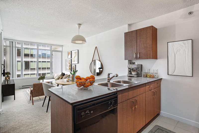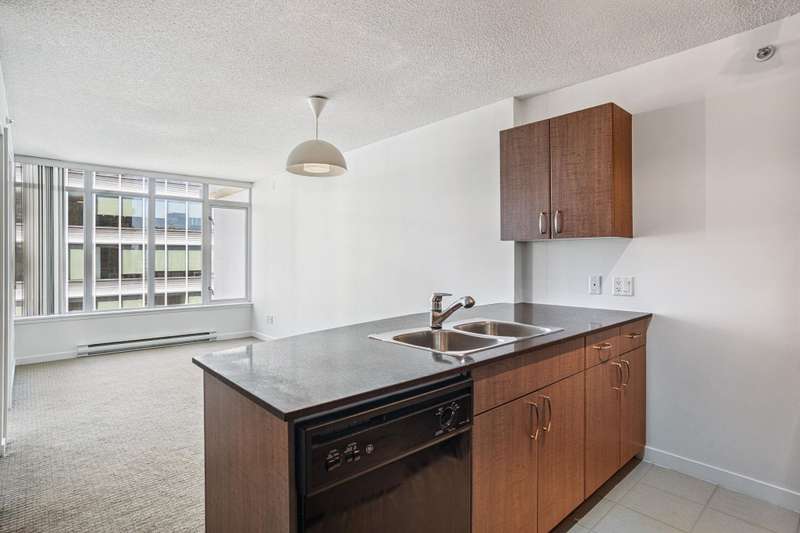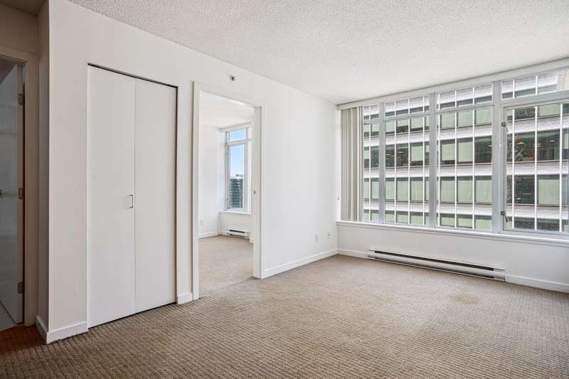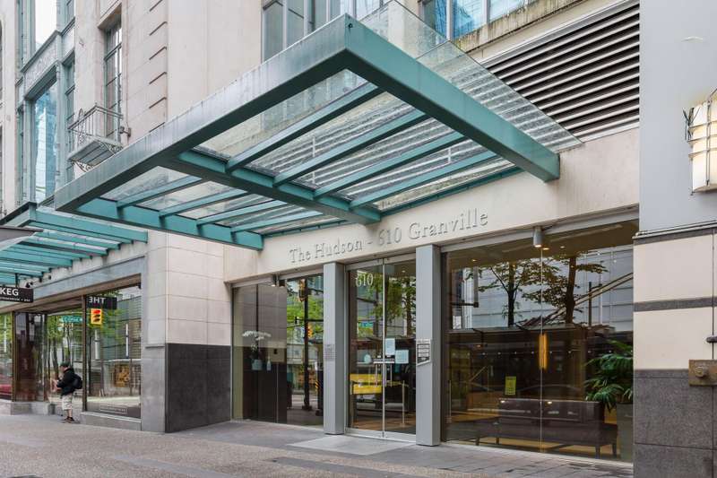 Welcome to THE HUDSON by Wall Financial, a sought-after, well-managed building conveniently located in the heart of Downtown. Enjoy a modern urban lifestyle with Pacific Center Mall, dining, entertainment & shopping at your doorstep. This 1 bedroom plus den at 500sqft, has an ultra efficient layout with no wasted space, bright with large windows, Newly Painted, move-in ready. Easy access to Granville SkyTrain. 1 secure parking included. Building Features: Fully equipped gym, 24-hour Concierge, Visitor parking, Bike Storage, Lounge, and Meeting Room. Perfect for investment or downtown lifestyle starter, with Live/Work Zoning.