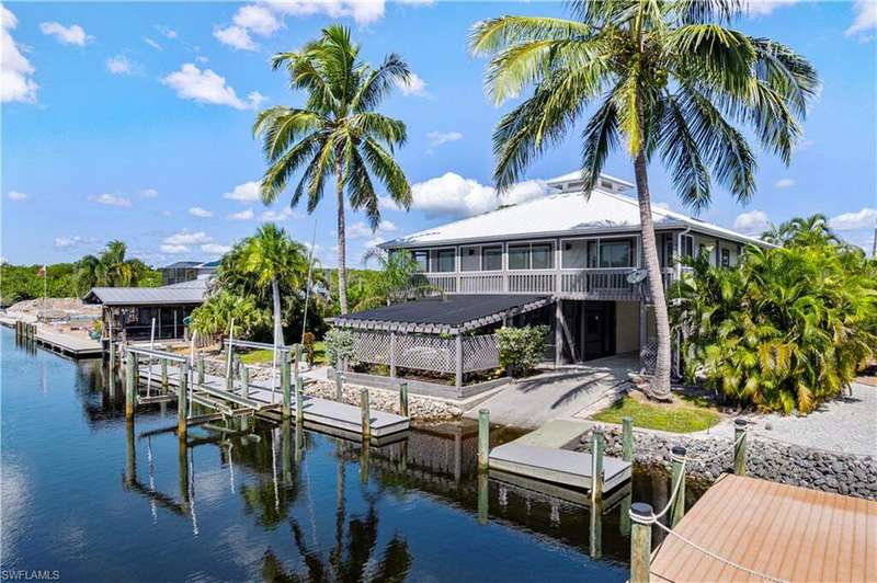 ELEVATED Olde Florida-style private retreat with stunning water views and DIRECT GULF-ACCESS! A true boater's paradise, this home features its own private concrete boat ramp and a new 66-ft dock (2023) - just steps from the Imperial River. Enjoy effortless access for fishing, boating, paddleboarding, or kayaking right from your backyard. This charming home features a BRAND-NEW 2025 metal roof, hurricane-impact windows and sliders, tile flooring, and soaring ceilings that fill the living spaces with natural light. The spacious primary suite offers private access to the lanai and an ensuite bath with a large walk-in closet, dual vanities, an oversized shower, and a separate soaking tub. Step outside to your expansive wraparound screened lanai - the perfect place to unwind, take in sunset skies, and watch dolphins and manatees glide through the canal. The lower level includes 400 sq. ft. of air-conditioned flex space (currently utilized as a workshop/studio), along with a screened patio area. Additional features include a spacious circular paved driveway, a covered carport with room for four vehicles, and clearance for RV parking. With no HOA or rental restrictions, this property offers exceptional investment potential! Conveniently located just minutes from Promenade Plaza and Coconut Point's shops and restaurants, and only 15 minutes to Mercato, Waterside Shops, with 5th Ave nearby. Enjoy being close to everything Downtown Bonita has to offer including new local restaurants, cafes & shops, Riverside Park (which hosts festivals & concerts), a brand-new library, a brand-new food truck park, Sugarshack live music cafe, & historic attractions such as Shangri-La Springs & the Historic Wonder Gardens. Only 15 minutes to Bonita Beach & Barefoot Beach with easy access to RSW via I-75 or Imperial Parkway!