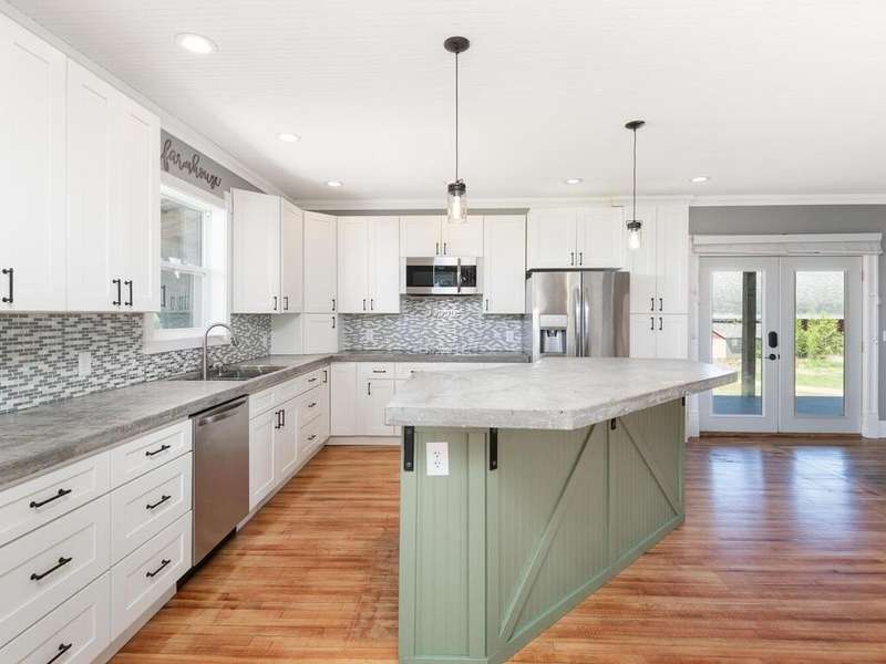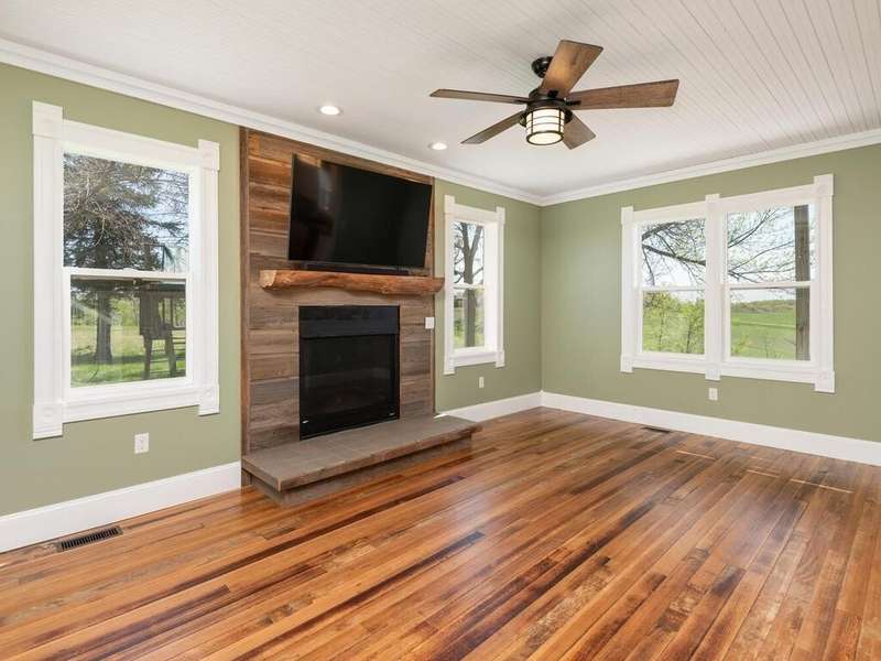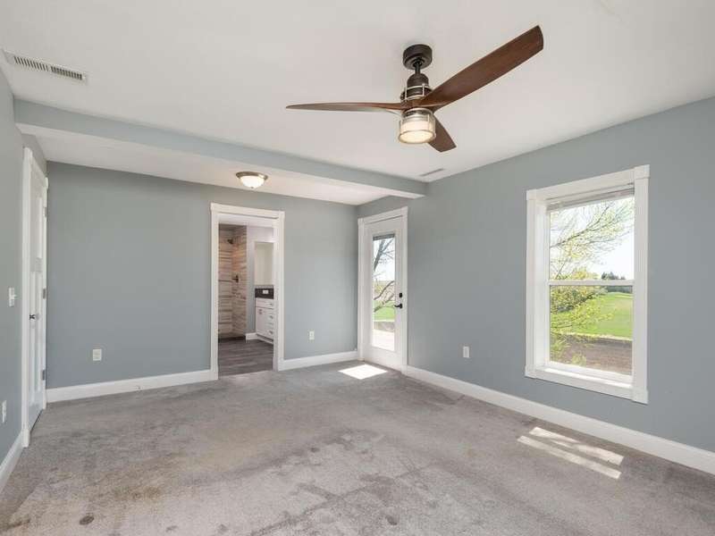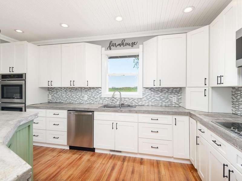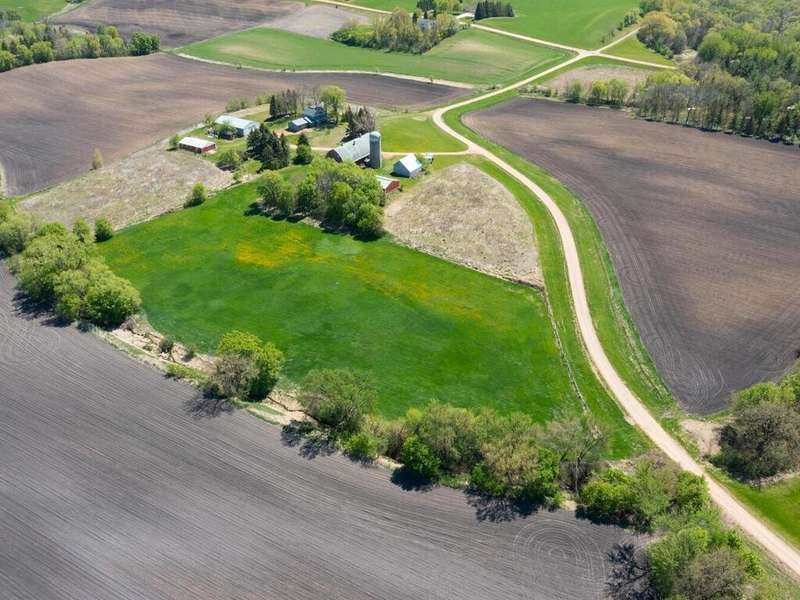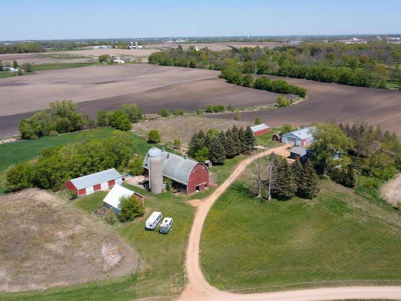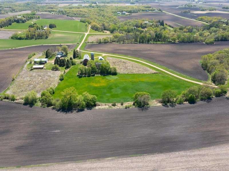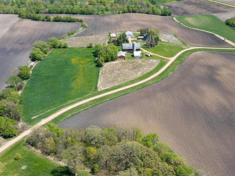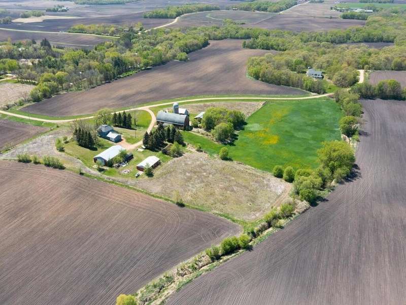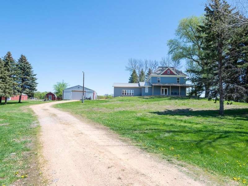 Hard to find 12-acre property in prime location offering an easy commute to the metro while also providing the ultimate country experience! This completely updated and lovingly restored farmhouse has undergone a total renovation since 2014 including plumbing, electrical, insulation, windows, doors, roof, siding, flooring, fixtures and everything in between! The expansive custom kitchen with double ovens is not one you will soon forget. The upper-level primary suite offers a generous-sized bedroom with a private walk out 9x30 balcony showcasing the beautiful countryside. The primary en suite bath features a walk-in tiled shower, double sinks and a custom walk-in closet. A few ways remain to add equity and your personal touch to this property with a walk-up attic and unfinished space in what was once the garage. The attached garage had the doors removed and siding installed to be converted to indoor space. Finish the project or add garage doors to return it to an attached garage. The outdoor area is exactly what you need for hobbies and animals with both tillable and pasture land. There is a barn, 40x70 pole shed with overhead door, and two 30x60 sheds that are cemented, one with electricity. Situated next to a creek and just a quick ride from the golf course, there is no shortage of activities to do here. You won't want to miss this one!