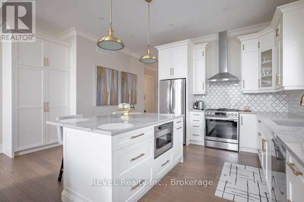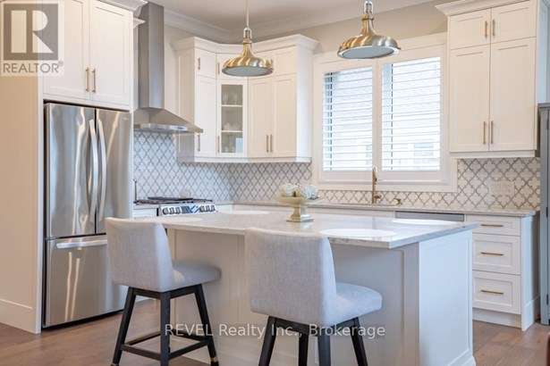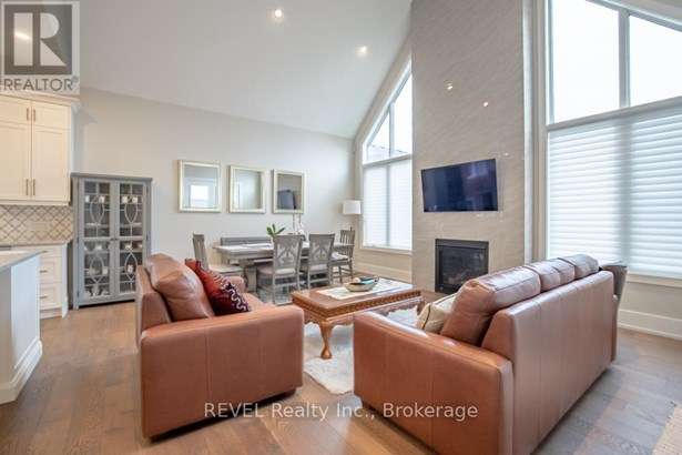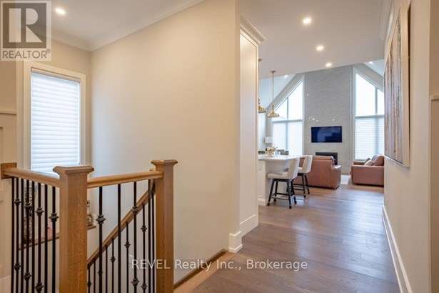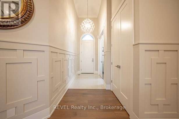 Set on a quiet, refined streetscape in the heart of St. Davids, 75 Millpond Road is a custom-built bungalow by DRT Homes offering over 2,700 sq. ft. of finished living space. The grand foyer with wainscoting opens to a soaring great room with 20-ft ceilings and a dramatic tiled fireplace. The main floor features a spacious primary suite with a walk-in closet and an ensuite, a second bedroom (currently styled as a home office) with its own 3-piece bath, and a bright, neutral kitchen with high-end finishes. Outdoors, a covered patio extends the living space into landscaped surroundings. The lower level is designed for gathering, with an expansive rec room, built-in bar/kitchenette with stone counters, an additional bedrooms and full bath and a spacious home gym. Millpond Road is known for its well-appointed high-end homes and peaceful setting - all within walking distance of Ravine Vineyard, local cafés, and dining in the village of St. Davids. Just minutes away are Old Town Niagara-on-the-Lake, Golf Courses, Shaw Festival Theatre, Queen Street shops and restaurants, The Outlet Collections of Niagara & White Oaks, and of course, the areas many renowned wineries. Particularly convenient about this location is the quick highway access for easy commutes, and close proximity to all that Niagara Falls and St. Catharines have to offer as well. An excellent opportunity to own a thoughtfully designed home in one of Niagara's most desirable communities!