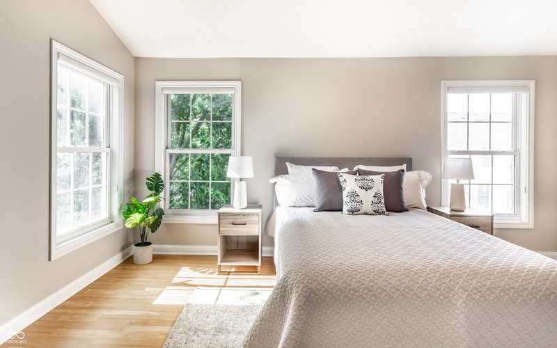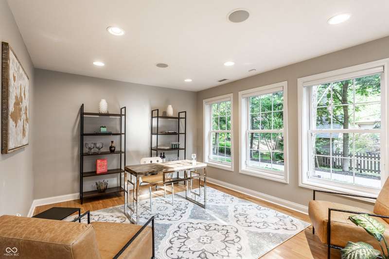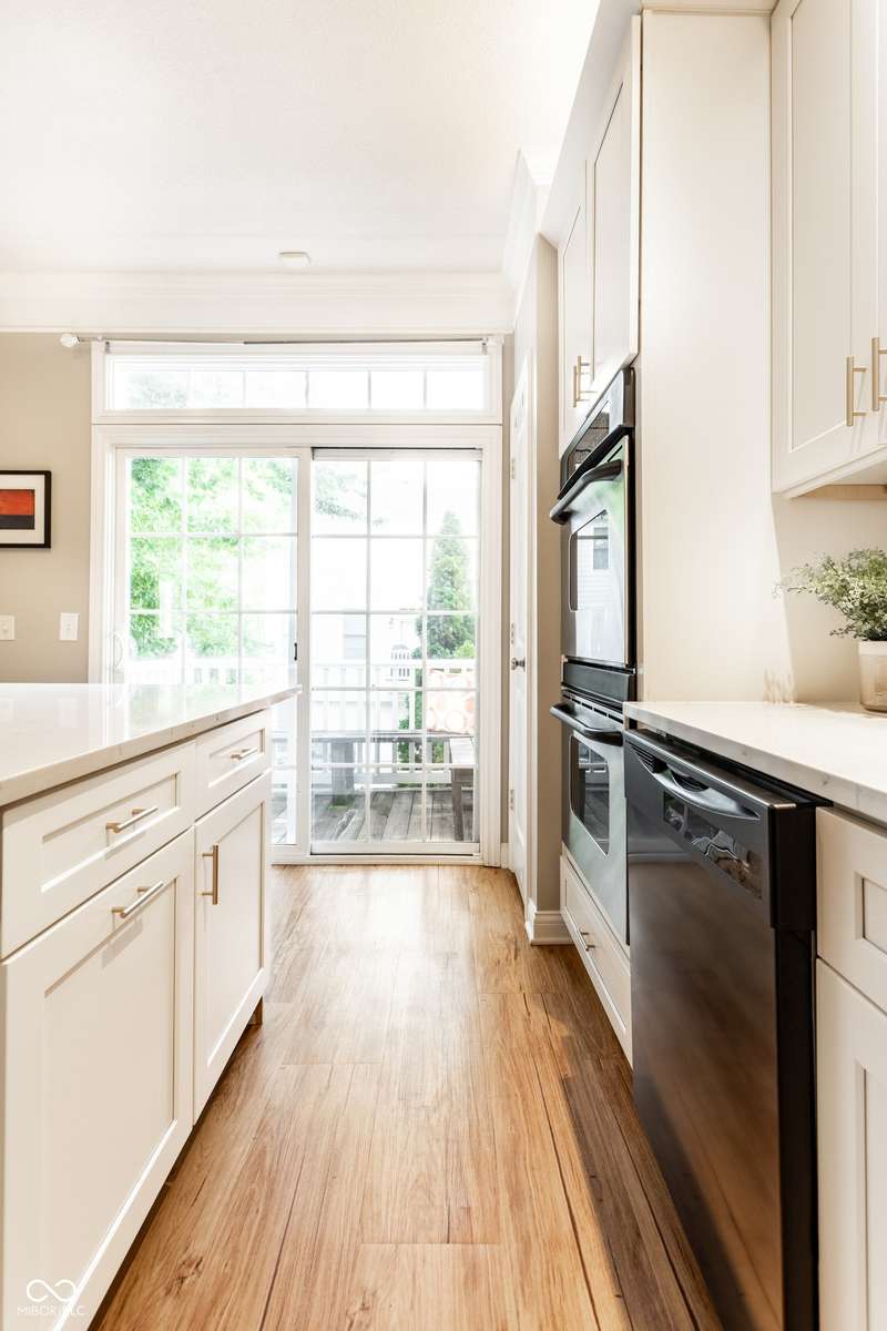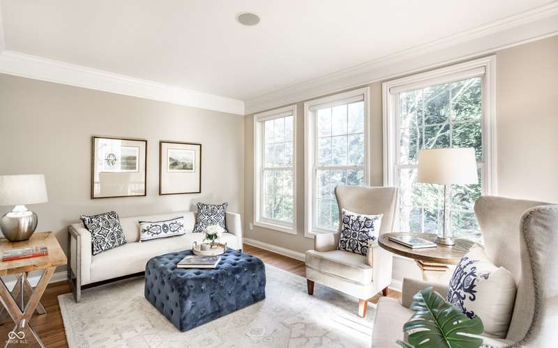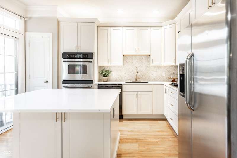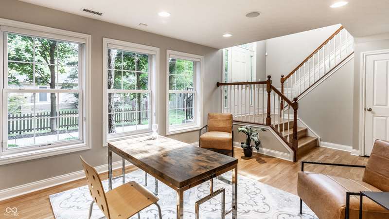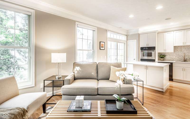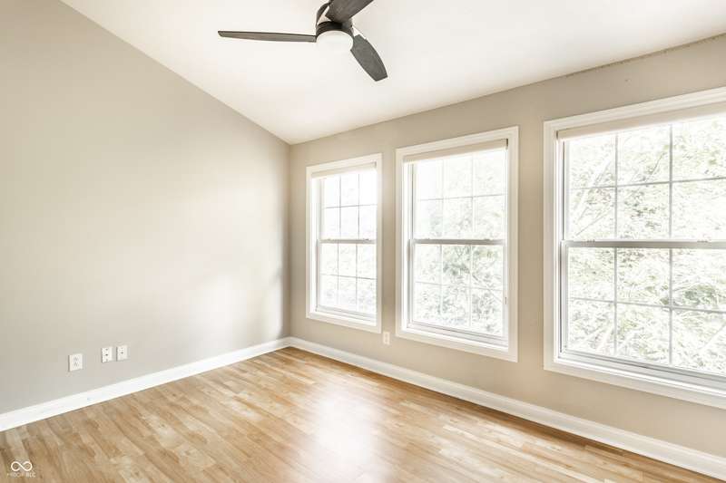 Welcome to your Magnificent Meridian Square Townhouse. This is the one you have been waiting for. Nestled in the woods is this end unit condo. In a quiet corner, farthest from 86th and farthest from Meridian Street, featuring a large greenspace. Use the front door or walk into the lower level from your attached two car garage with laundry, full bathroom and a closet. The main floor is the heart of the home where you will find the kitchen, family room, dining room, bonus space, half bath, Walkin closet and deck space off the newly updated kitchen. The top floor features three spacious bedrooms with custom closets and two full bathrooms. Hard floor surfaces throughout and whole house speaker system. Stop reading and call your real estate agent now to schedule a showing. Conveniently located on the north side of Indianapolis in Nora boasts easy highway and downtown access. Lighted sidewalks, dog stations and beautifully manicured year-round landscaping. Built by Ryland.