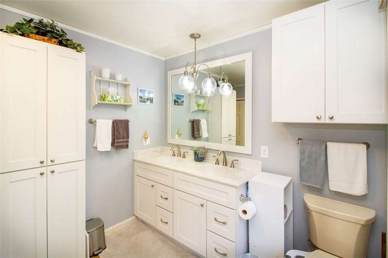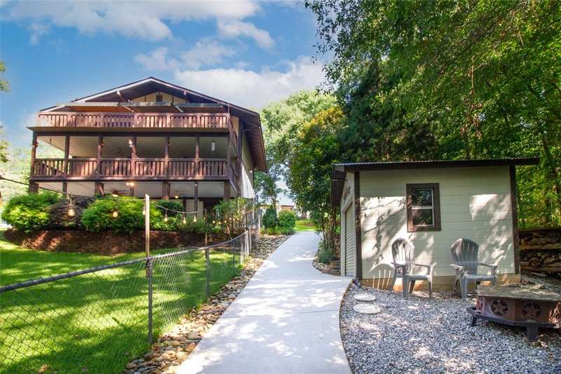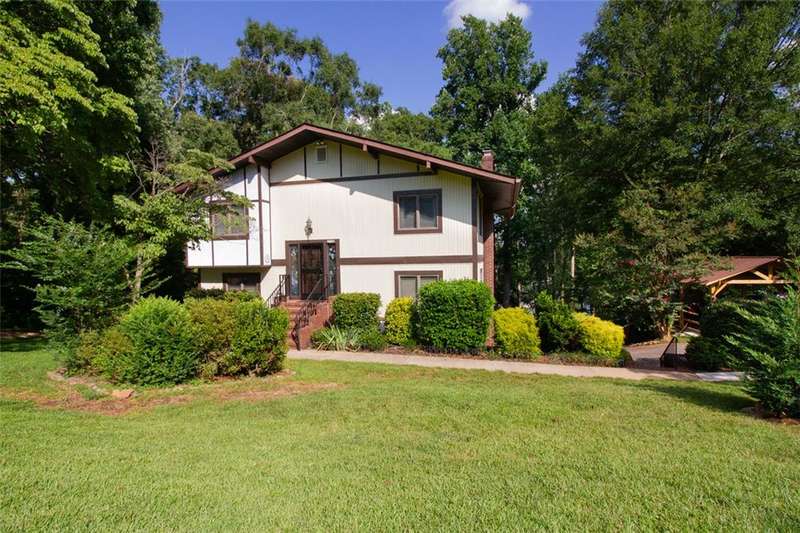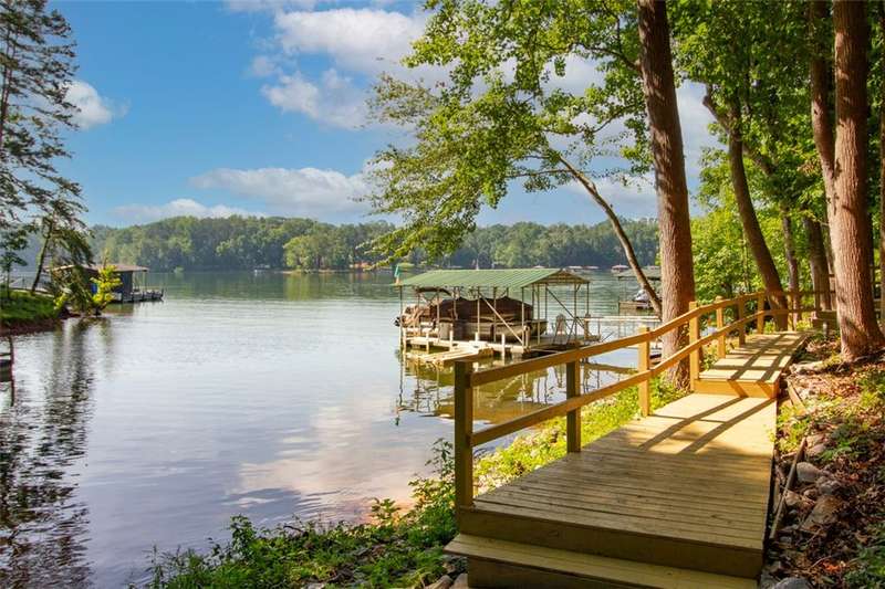 Lakefront home with stunning views of Lake Hartwell from all the main living areas, including open deck, porch and patio, each 36' x 10'. 3BR/2BA, additional large den/family room with gas fireplace, large lot with fenced in backyard and storage shed, fire pit area, walkway to covered dock with boat lift, covered carport in addition to the garage with shop area. Everything has been updated including appliances, flooring, paint, HVAC and water heater. Split foyer 2 story with a full basement, all heated and air conditioned