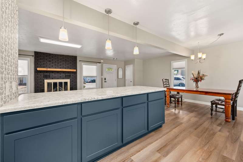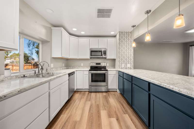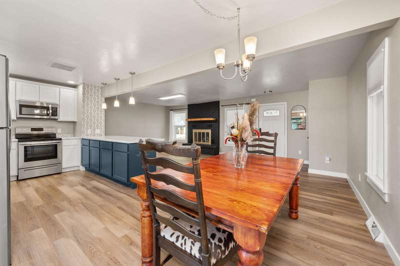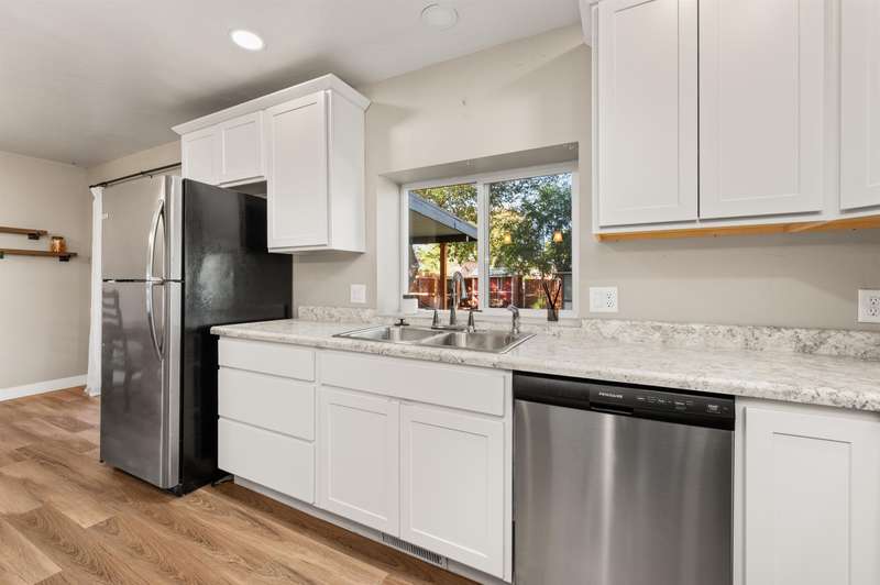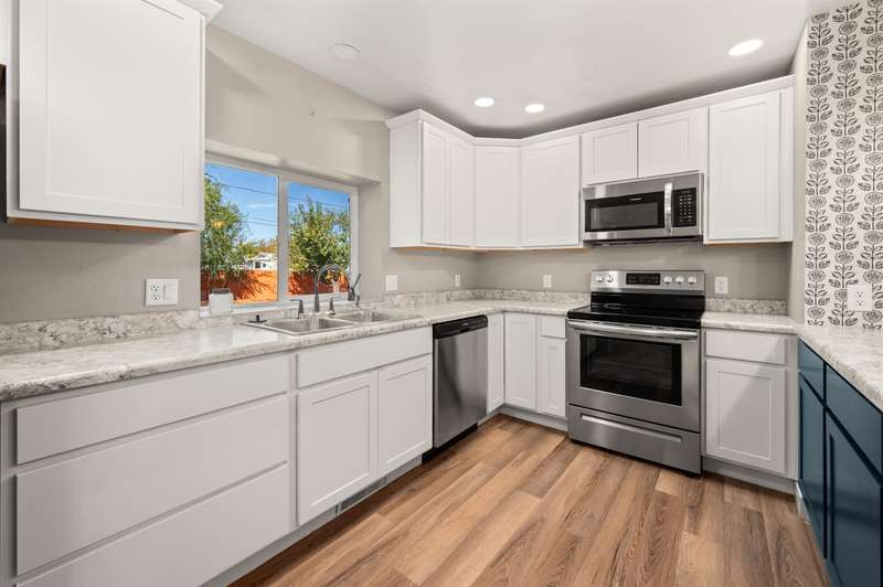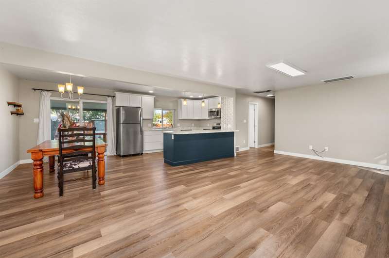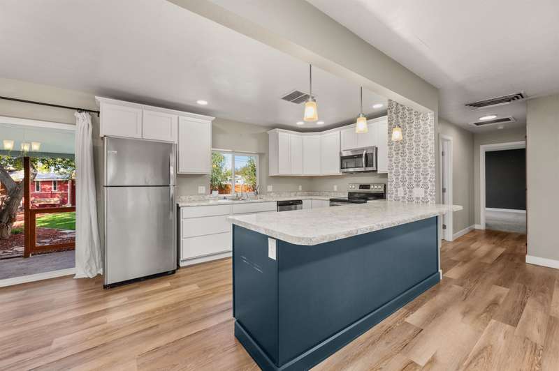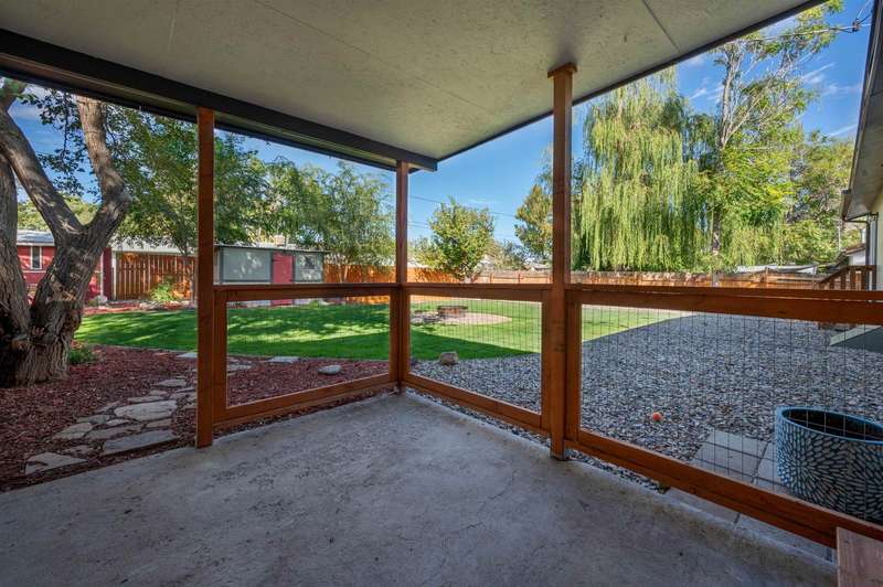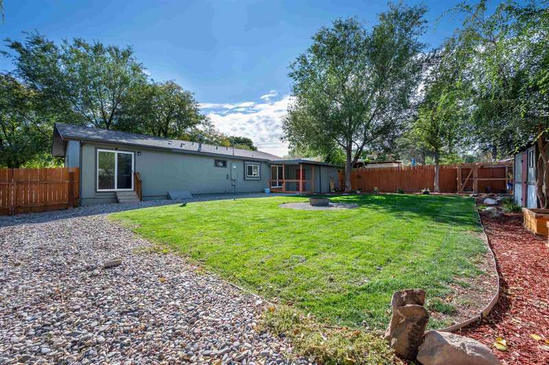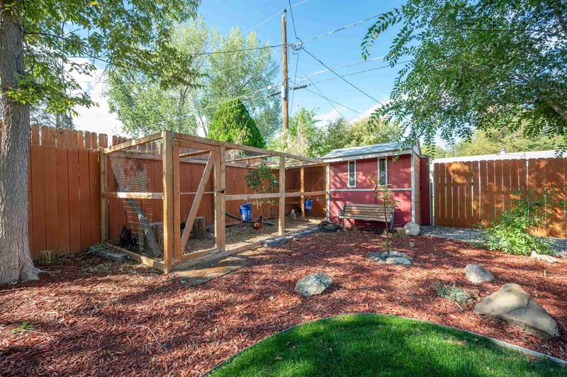 Welcome to this beautifully renovated 2-bedroom, 2-bathroom home offering 1,176 sq. ft. of comfortable living space. Step inside to an open-concept layout with a modern kitchen—complete with refrigerator, dishwasher, electric range, and microwave hood, all included—designed for both style and functionality with soft close cabinets. A covered back porch leads to a generously sized backyard, perfect for relaxing, entertaining, or gardening. Outdoors, the property also features RV parking, a carport, storage shed, chicken coop, and irrigation pump for added convenience. Recent updates in 2020: new roof, windows, doors, plumbing, hot water heater, cooler, & furnace. This move-in ready home blends modern comfort with charm. Schedule your showing today!