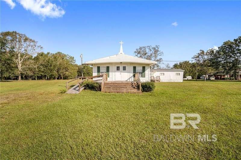 Come check out this piece of property in a great location near Old Pascagoula in Grand Bay. This beautiful piece of property has 7.5 acres of flat and level land. Sitting in the center of the property is a 2000 square foot church that could be changed back to residential use or used as a church. Fellowship hall features a full kitchen and both buildings have several rooms for meetings. Property also has an outside storage building. Church and storage building are being sold as is. Come check out the endless possibilities on this pretty slice of Grand Bay. Buyer responsible for verifying all measurements and relevant details. Buyer to verify all information during due diligence.