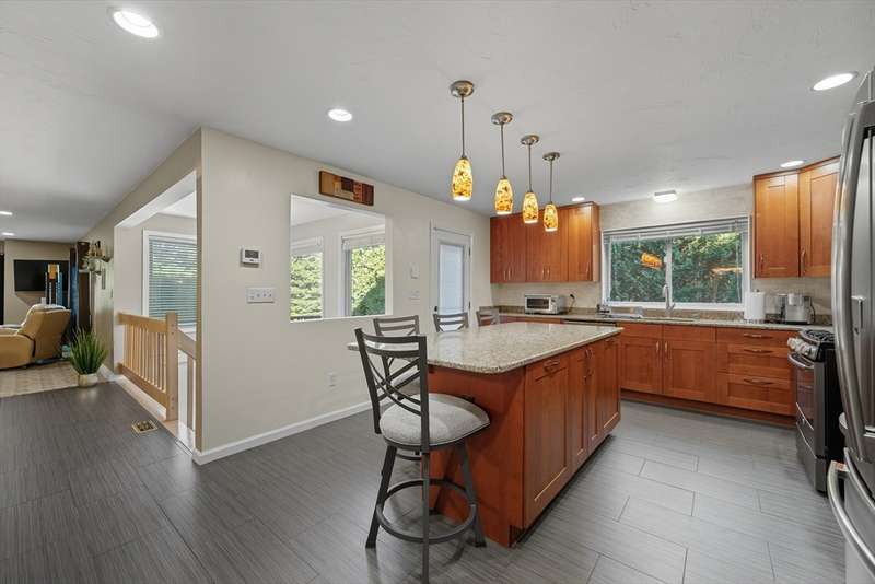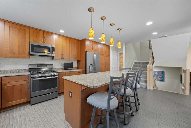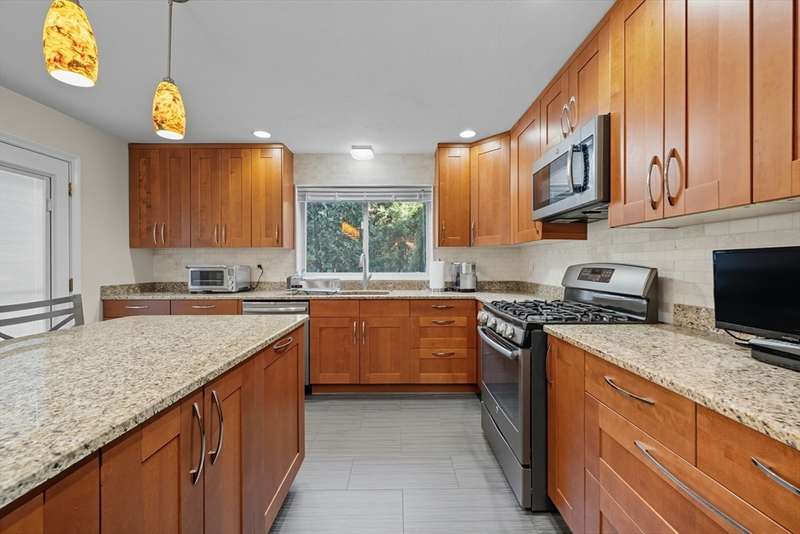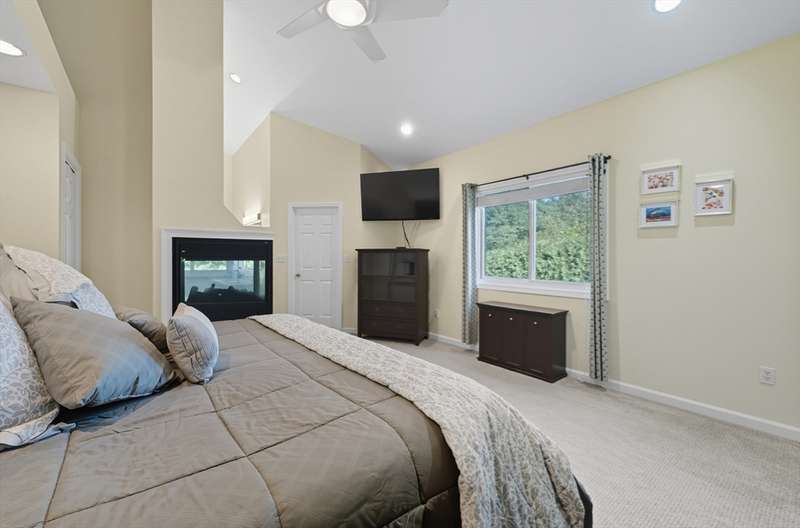 Welcome to this meticulously maintained, and beautifully updated multi-level townhouse in Ashland's Village of a Thousand Pines. This home features two spacious bedrooms, each with its own ensuite bath, including a primary suite with vaulted ceilings, walk-in closet, and fireplace. The finished lower level offers a flexible family room and dining area, ideal for relaxing or entertaining. The open-concept kitchen is designed with granite countertops, updated appliances, and a large center island, flowing seamlessly into the dining and living spaces. A gas fireplace, oversized windows, and modern finishes create a bright and inviting atmosphere throughout. Additional highlights include an attached garage, private deck for outdoor enjoyment, and a half bath with designer touches. This home combines comfort and convenience with close proximity to shopping, dining, schools, and commuter routes, including the commuter rail.
