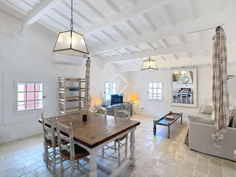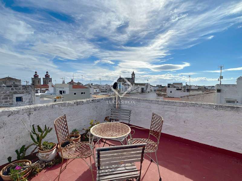 Lucas Fox presents this charming 96 m² duplex apartment with an 87 m² habitable basement with a separate entrance in the historic center of Ciutadella de Menorca. The property is located on the second floor of a building with only two neighbors. Upon entering, a beautiful staircase leads to the main room , which includes a charming living-dining room with a sandstone fireplace and a beautiful, fully equipped separate kitchen . A corridor with a dressing room leads to a bathroom, a double bedroom , and, at the far end, the main bedroom with a private bathroom and access to a large 40 m² storage room or dressing room on the lower floor , which is not included in the floor area. From this floor , via a sandstone staircase, we reach the second floor , where we have a small living room, another double bedroom , and a flight of stairs that leads us to the beautiful and cozy terrace with spectacular views of the cathedral and the historic center of Ciutadella. The property is sold fully furnished and equipped and features hot-and-cold split air conditioning, exposed beams on the ceilings, and arabesque mosaics on the kitchen and bathroom floors. On the same building and through a separate entrance we find the splendid, completely open-plan basement with a bedroom, a bathroom and a kitchen, ideal for guests. Without a doubt, a unique property for year-round living or extended stays with family and/or friends. Contact us for more information or to arrange a viewing.