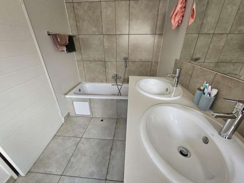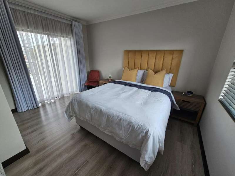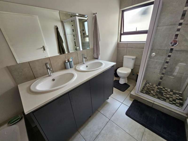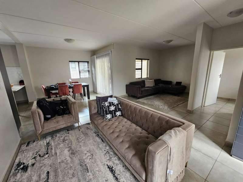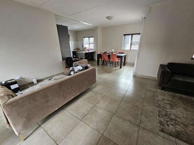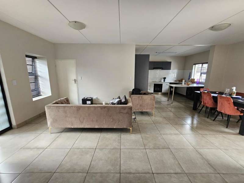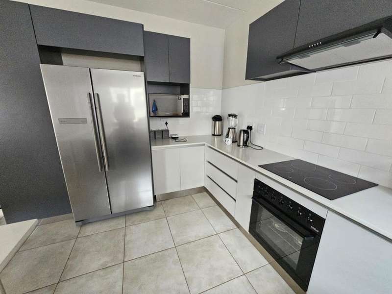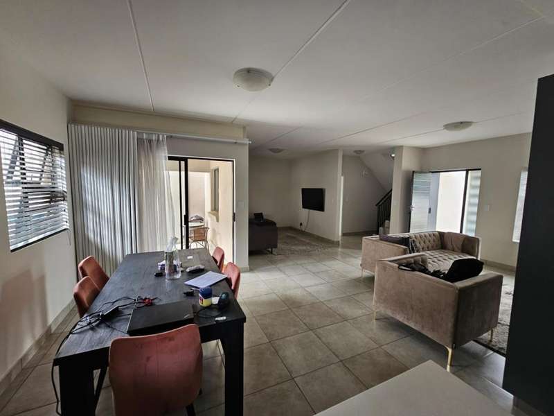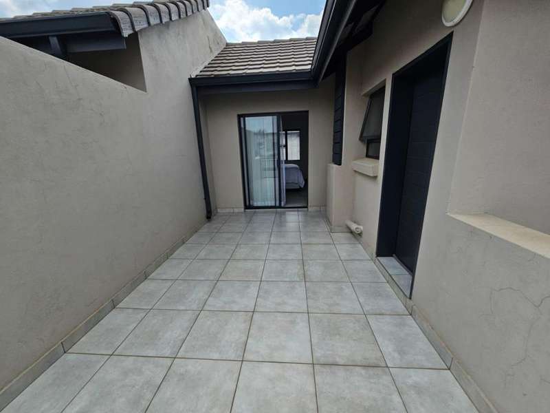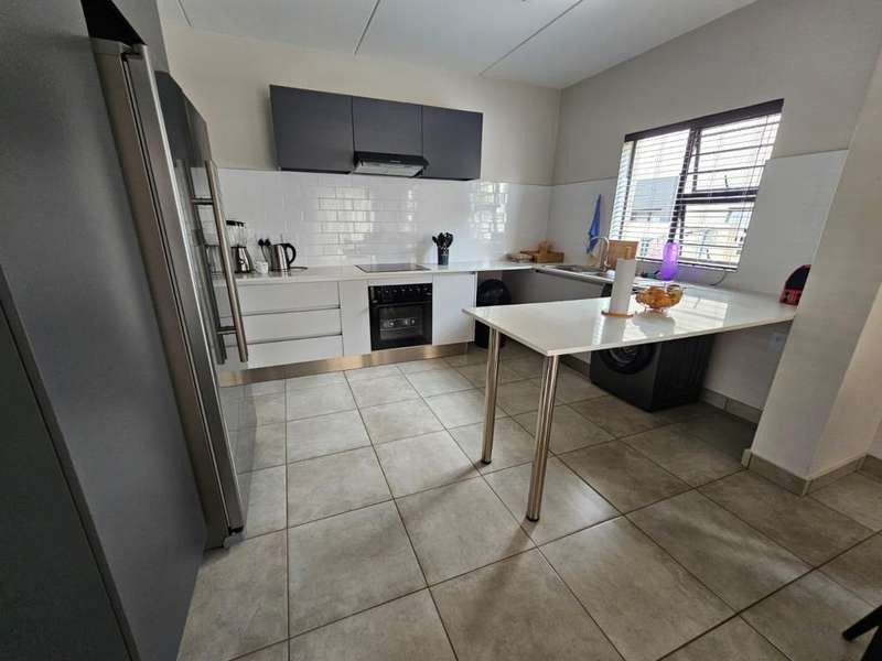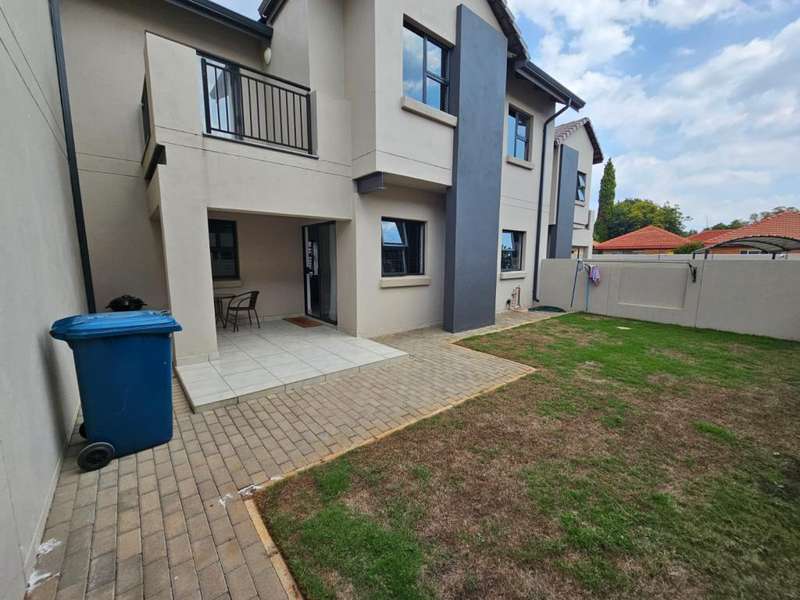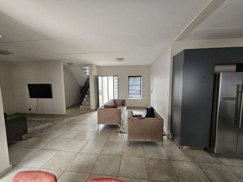 Stunning Modern Duplex in a Secure Complex This beautifully designed 3-bedroom duplex is situated in a secure complex, offering both style and peace of mind. * Downstairs: The living areas feature elegant, low-maintenance tiles throughout. An open-plan design seamlessly connects the kitchen, lounge, dining room, and TV room, creating a spacious and inviting atmosphere. These areas flow effortlessly onto a covered patio, perfect for entertaining or relaxing. A convenient guest toilet is also located downstairs. * Kitchen: The contemporary kitchen boasts Caesarstone countertops, a glass stove hob, and ample space for three under-counter appliances, along with a double fridge/freezer. A pantry and breakfast counter provide additional storage and functionality. * Upstairs: The second floor is home to two bedrooms, a well-appointed bathroom, and a master bedroom with its own en-suite bathroom. All bedrooms are beautifully fitted with stylish laminated flooring, adding warmth and elegance to the space. Balconies overlook the beautiful garden, offering a peaceful view and additional outdoor space. * Parking and Security: The property includes a single garage and an additional covered carport for extra parking. Security features include security guards, an automated gate, electric fencing around the perimeter, and safety gates for added peace of mind. Pets are allowed with prior approval. * Additional Features: Fibre internet is available for fast and reliable connectivity. An additional monthly HOA levy of R806 applies. This duplex is the ideal blend of modern living, security, and convenience. Contact us today to arrange a viewing!