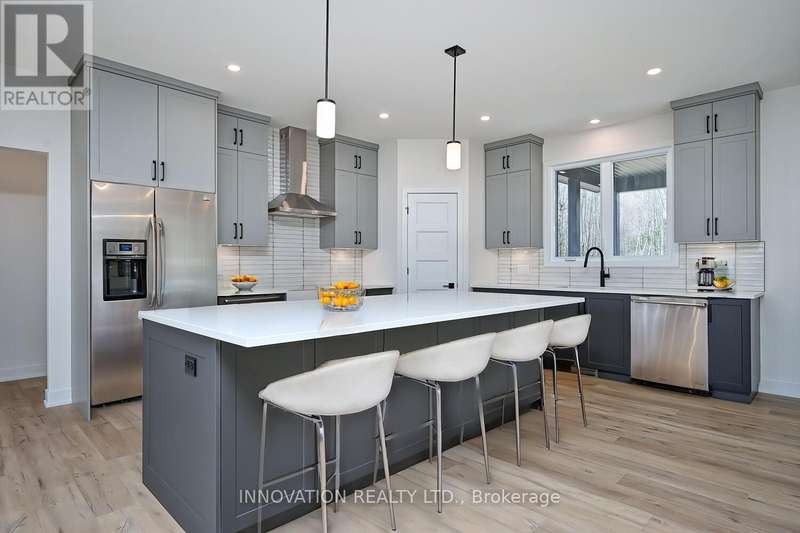 Welcome to SILVER CREEK ESTATES! This modern bungalow spans 1,890 square feet and beautifully blends contemporary design with classic charm. The spacious open concept layout seamlessly connects the living, dining, and kitchen areas, showcasing elegant quartz countertops throughout that add a touch of luxury. Large island and ample cupboards are an added feature to this home. Engineered hardwood flooring flows effortlessly across the main living spaces, while stylish tile enhances the wet areas for durability and ease of maintenance. With three well-appointed bedrooms, including a luxurious ensuite featuring double sinks, stand alone tub, and walk in tile shower, the home offers both comfort and convenience. The two and a half baths ensure ample space for family and guests. A highlight of the property is the large covered concrete back porch, providing the perfect spot for outdoor relaxation or gatherings. Zanutta Construction Inc offers many standards that would be considered upgrades with other builders, such as; quartz counters throughout, engineered hardwood and tile throughout the main level, potlights, gas fireplace, A/C, auto garage door openers, insulated garage doors, basement bath rough in, 9' ceilings. Other lots and models to choose from, Model home available for showings by appointment. HST included in purchase price w/rebate to builder. Pictures/VT/Matterport of a similar model, some pictures have been virtually staged, finishes will vary. Only 5 min to 416, 10 min to Kemptville, 15 min to Winchester. OPEN HOUSE LOCATED AT 1694 SHARON ST. (id:6509)