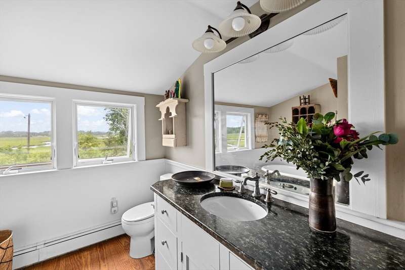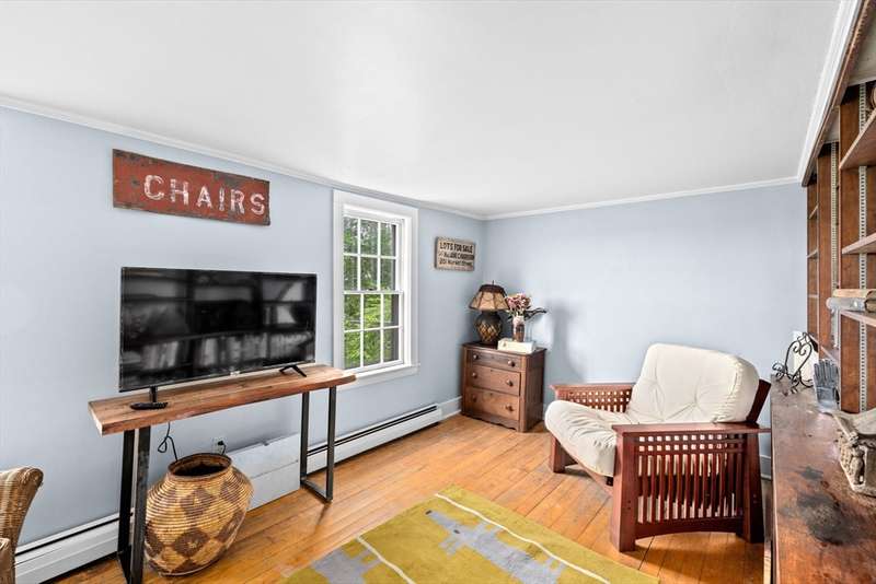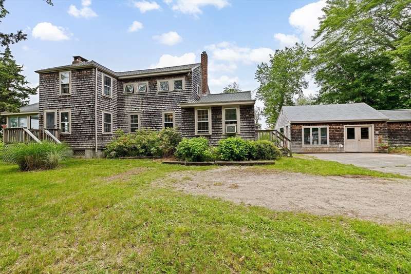 VIEWS! Captivating Country Home overlooking Herring and North Rivers includes impressive free standing studio that adds many options! Exuding charm, character and offering rich wood flrs flowing thru versatile floor plan - this home is unique opportunity for buyer looking for a special property to make their own. Welcoming kitchen w/eat-in area is filled w/sunlight and is adjacent to lovely dining room. Expansive living rm w/fireplace, French doors to 3 season sunroom; immerse yourself in beautiful ever changing vistas! Cozy family room overlooks generous rear yard and views- space for quiet enjoyment or use as bedrm w/full bath on this level. Upstairs find the main bedrm with bath and 2 additional bedrms. A standout feature is the studio: perfect for artists, fitness buffs, home office! Sited near conservation land, train, restaurants, marina & Greenbush village. Enjoy nature, charm & versatility in this rare gem!
