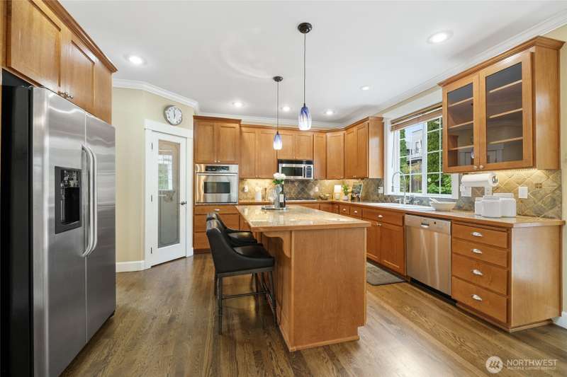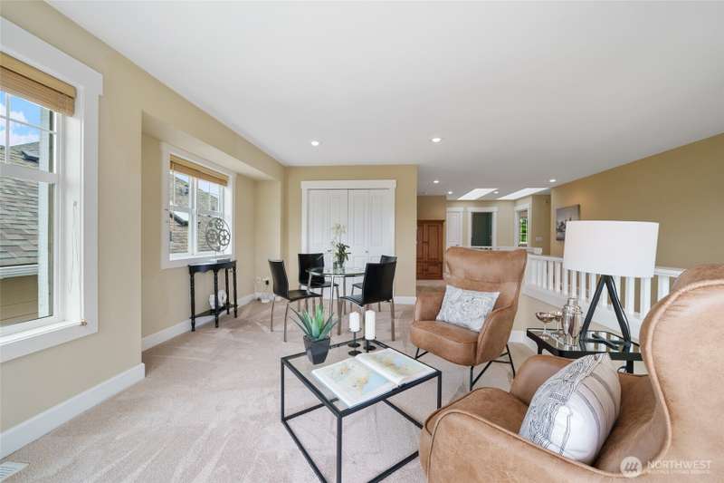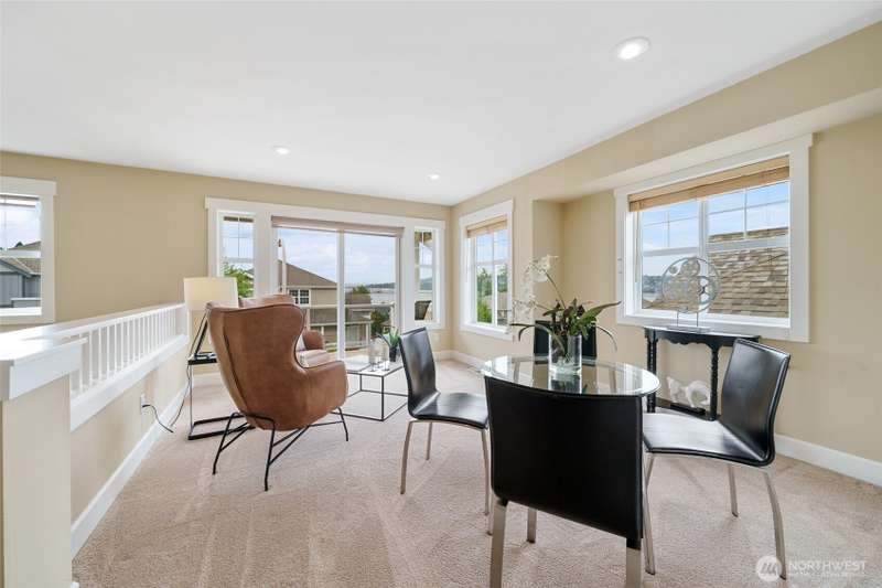 Experience refined living in this Lake Washington view home, ideally set in lower Kennydale’s coveted Clover Creek neighborhood. Soaring ceilings in the vaulted primary suite create a serene retreat with an exceptionally large walk-in closet. A chef’s kitchen and dining area flow to a private backyard oasis, designed for effortless entertaining. Upstairs, the media loft opens to a covered deck where sparkling lake views set the backdrop for relaxation. Modern comforts include abundant storage, whole-house vacuum, EV charger, and many newly-installed systems such as a new 95% efficient furnace, new 4-ton A/C, and new hot water tank. A rare blend of elegance, comfort, and premier location. See today!