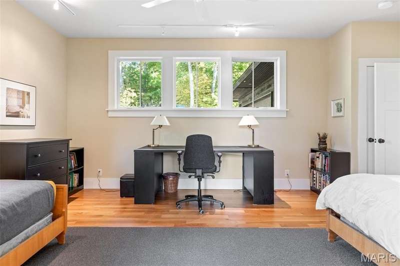 Welcome to 2249 Alpine Ridge Drive at Innsbrook! This beautiful Alpine lakefront home was created by its architect owners to blend the natural setting with modern living to create a spectacular getaway home where you will always feel like you're on vacation. This well thought out floor plan combines comfort, style, and outdoor living in a comfortable and gracious setting. Inside, you’ll find soaring ceilings, wood floors, and oversized windows that frame stunning outdoor views. The open kitchen offers abundant cabinetry, a center island, and modern appliances, seamlessly connecting to the family room with a cozy fireplace—the perfect spot for gatherings year-round. The spacious main floor primary suite is a relaxing retreat with water views, a spa-like bath, and generous closet space, in addition to an attached den that doubles as a second main floor bedroom. Additional bedrooms in the lower level are equally inviting, while a main-floor laundry, spacious recreation room and attached two-car garage add convenience. Outdoor living is where this home truly shines—enjoy mornings on the porch, evenings gathered around the firepit, or afternoons on the dock overlooking the water. With direct lake access, you can fish, kayak, or simply unwind in the peaceful surroundings. The lakefront at this home is a wonderful surprise and offers limitless potential for waterside enjoyment. This property offers the best of Innsbrook living, blending elegance, nature, and year-round recreation.