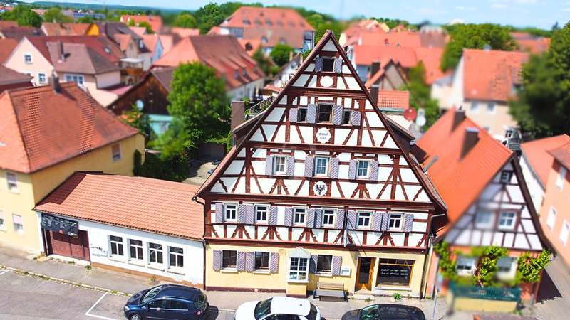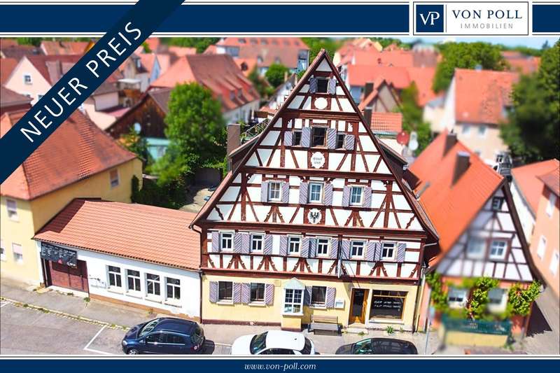 Welcome to your new residential and commercial building in the center of Bad Windsheim! This versatile property combines living and working under one roof - ideal for family businesses, restaurateurs or investors with vision. With plenty of space for individual design, charming architecture and a central location in the popular spa town of Bad Windsheim, this property offers a special opportunity. As soon as you arrive, you are greeted by a spacious store that was extensively modernized in 2015 and is ideal for retail, services or gastronomy. The location is ideal Public parking spaces are located in the immediate vicinity and a practical roller shutter with integrated access door provides access to the enclosed property with inner courtyard. From here, you have access to the former restaurant and the directly adjacent residential building via the outdoor area/beer garden. The residential building is accessed via a separate staircase and boasts three residential units. On the upper floor, on the right-hand side, you will find a currently well-let 2-room apartment with around 50 m² of living space. On the opposite side is a spacious, approx. 130 m², 7-room apartment. Here you have the chance to combine historical charm with modern accents - the perfect basis for sophisticated living with plenty of space for free development. All apartments have double-glazed plastic windows and are well maintained. Another highlight awaits you on the top floor: a 3-room apartment measuring around 80 m² with an attractive roof terrace and magnificent views over Bad Windsheim. This unit is also currently rented out. Thanks to the steep pitch of the roof and the high kneeling floor, there are almost fully usable rooms here without any annoying sloping ceilings. The property is listed as an individual monument, which further emphasizes its historical value. benefit from a unique character that cannot be reproduced. Overall, the building is in a well-preserved condition in keeping with its age and offers numerous options for conversion, extension or individual usage concepts. Whether as a multi-generational home, residential with commercial use or as an investment, there are virtually no limits to your creativity. Two parking spaces directly in the inner courtyard provide additional convenience and underline the suitability of this property for everyday use. This property is the perfect choice for an entrepreneurial family with a gastronomic concept, for large families with space requirements or for investors looking for a solid capital investment with development potential in Bad Windsheim. Be inspired by the space, structure and atmosphere and realize your ideas where others go on vacation. Have we aroused your curiosity? Then request the detailed exposé now without obligation - we look forward to hearing from you!