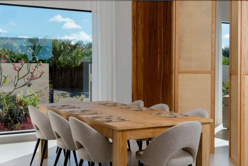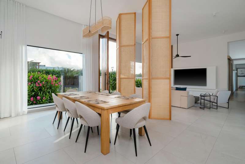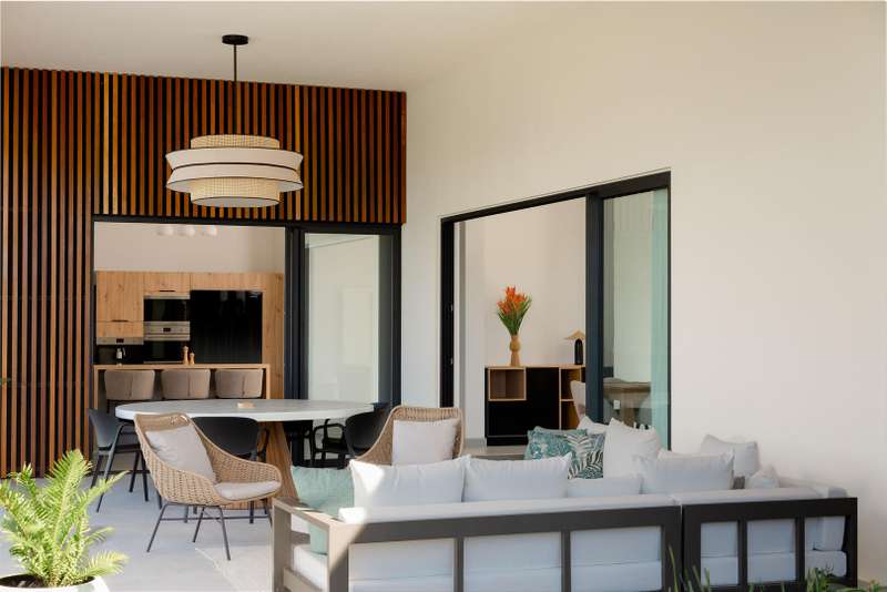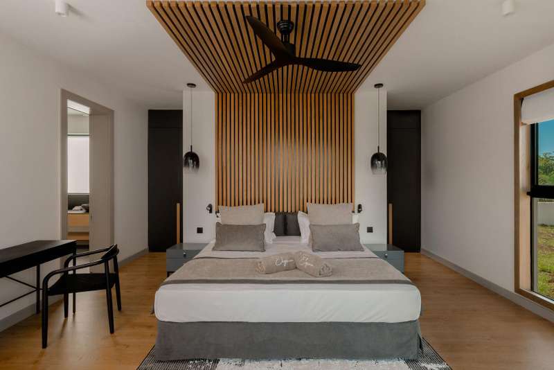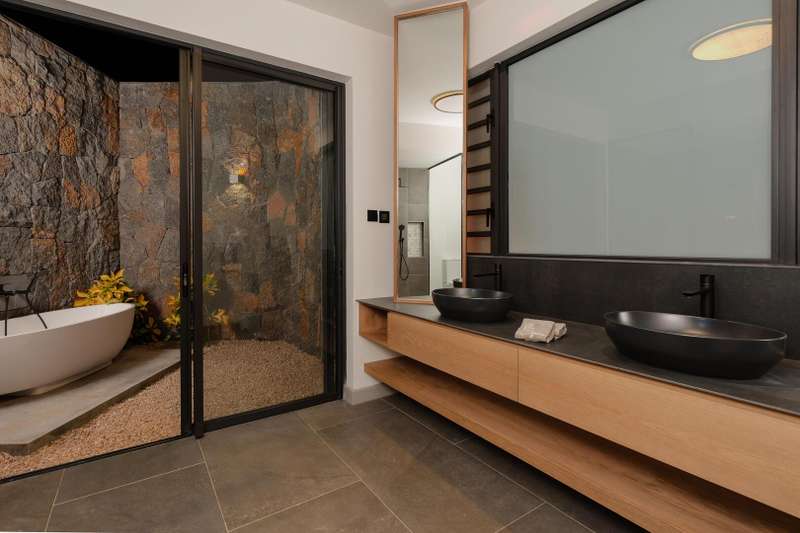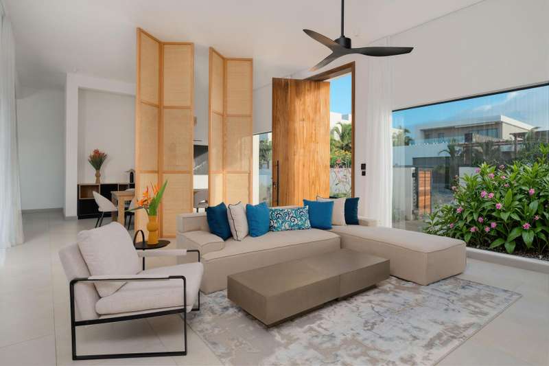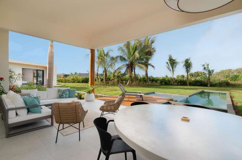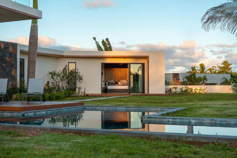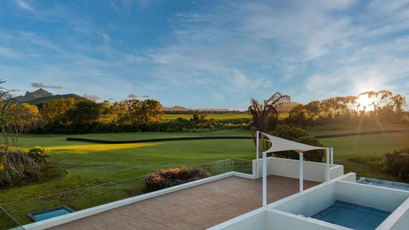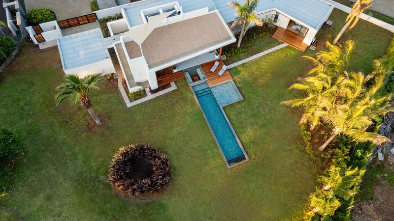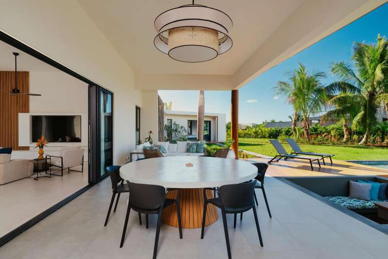 Nestled in a lush and tranquil environment, this contemporary three-bedroom ensuite villa offers a harmonious lifestyle blending modern comfort with tropical serenity. Designed on one level, it stands out for its clean architecture, bright living spaces, and generous openings that create a seamless connection between the indoors and the garden. From the moment you step inside, the atmosphere feels both refined and inviting. The main living area opens onto a covered terrace that naturally extends toward the pool and landscaped garden. Large glass doors flood the interior with natural light throughout the day and frame serene views of the surrounding greenery. The kitchen and dining area are conceived in a warm, convivial spirit, combining light wood, neutral tones, and natural textures. A spacious dining table invites you to share meals in an elegant and sunlit setting, enhanced by a panoramic window overlooking a floral garden. Attention to detail and the quality of finishes create a soothing sense of balance and sophistication throughout the home. The outdoor terrace is the villa’s true centerpiece, featuring a shaded dining area, a comfortable lounge, and a stunning infinity pool — a ribbon of water that visually extends into the garden. The spaces are equally suited for moments of relaxation or gatherings with friends and family. A sunken lounge by the pool offers an intimate spot to unwind and enjoy tropical evenings under the stars. Each of the three ensuite bedrooms is designed for privacy and comfort, with direct access to the garden or to a private terrace, allowing a constant connection to nature. The bathrooms combine natural materials with contemporary lines for a timeless sense of elegance. An exterior staircase leads to the rooftop terrace — a tranquil open-air retreat ideal for relaxing or watching the sun set over the lush landscape. The villa’s orientation ensures abundant natural light while maintaining cool interiors through thoughtful cross ventilation. Located in one of the island’s most sought-after residential areas, the property enjoys easy access to beaches, golf courses, and nearby amenities. It is the perfect home for those seeking well-being, privacy, and a refined lifestyle. This villa is part of the prestigious Anahita Mauritius estate, a benchmark in luxury living on the island’s East Coast. Spanning more than 213 hectares between sea and mountains, Anahita seamlessly combines exceptional residences, a championship golf course designed by Ernie Els, five-star hotels, and exclusive lifestyle services. Facing the turquoise lagoon and the iconic Île aux Cerfs, the estate captivates with its serene atmosphere, lush tropical vegetation, and elegant architecture that blends harmoniously into its surroundings. Residents enjoy direct access to two world-class golf courses, a private beach on Île aux Cerfs, and a full range of leisure and wellness facilities, including a spa, fitness club, tennis courts, water sports, fine dining, and concierge services. A true haven of peace, Anahita offers an exclusive way of life where luxury and authenticity coexist naturally. Every residence is designed to capture the site’s natural beauty, tranquility, and breathtaking panoramas. A subtle harmony of modern design, natural materials, and open spaces, this villa embodies a refined art of living — a place to fully embrace the comfort of contemporary architecture surrounded by the timeless beauty of tropical Mauritius.