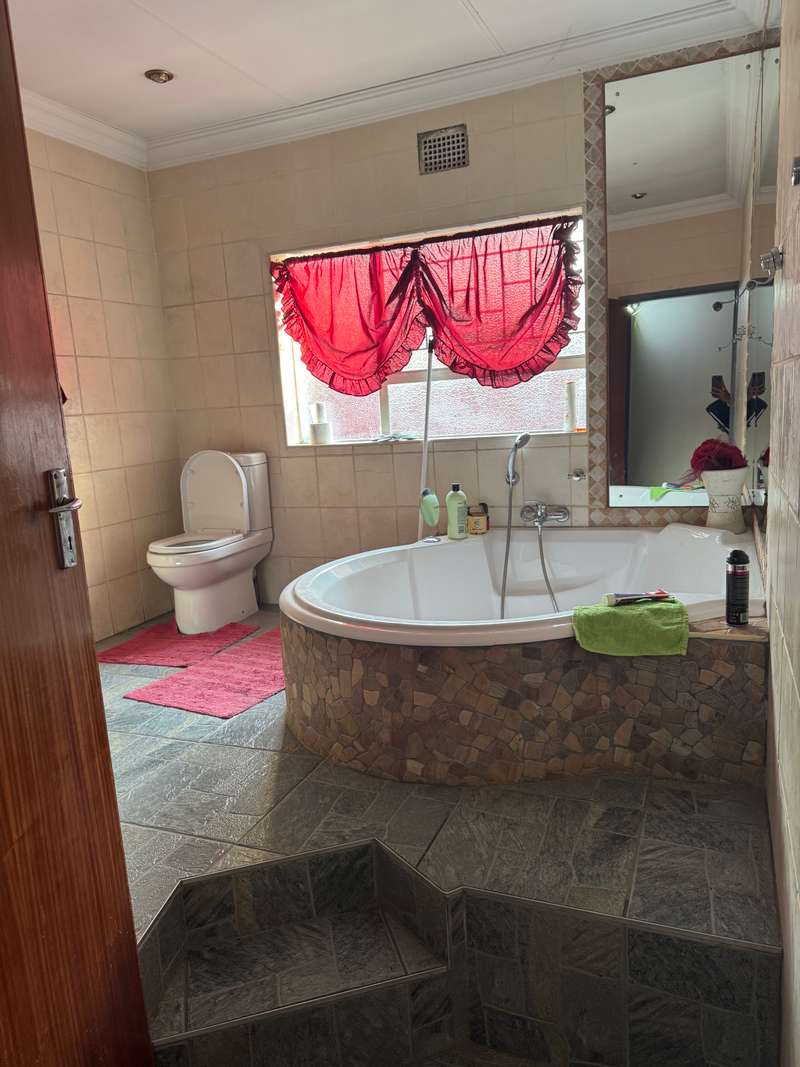 Neat and Well-Maintained Family Home This charming home offers a spacious open-plan living areas, including a lounge, dining room, and family room, ideal for comfortable family living and entertaining. Fully equipped Bar Area, ideal for indoor entertaining. The open and spacious kitchen is ideal for culinary enthusiasts, offering plenty of room to prepare and enjoy meals with family and friends. Move-in ready with everything your family needs for comfort, convenience, and peace of mind Six specious bedrooms, with the main bedroom includes an en-suite bathroom with a shower, toilet, and a jacuzzi for the family to enjoy relaxing bath time. A self-contained 1-bedroom flatlet with its own bathroom—ideal for extended family, rental income. A borehole connected to the home ensures water efficiency and reliability, even during dry months. Parking, Security & Extras: Secure Carport for 8 Vehicles, Excellent security: alarm system, CCTV, burglar bars, and electric gate for peace of mind. Don’t miss the opportunity to view this one-of-a-kind gem!