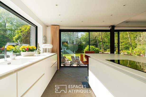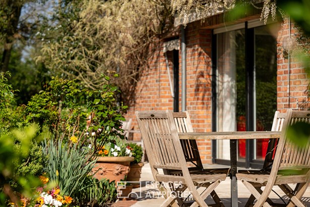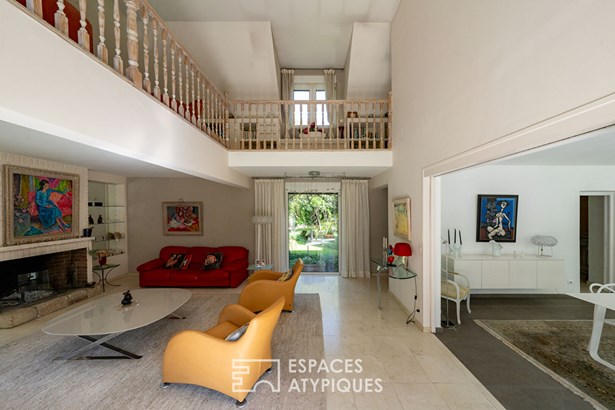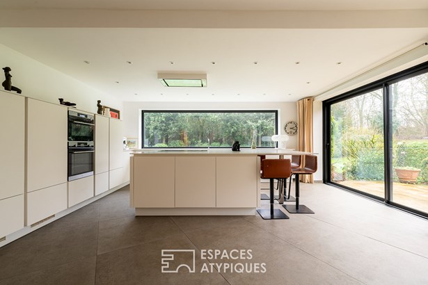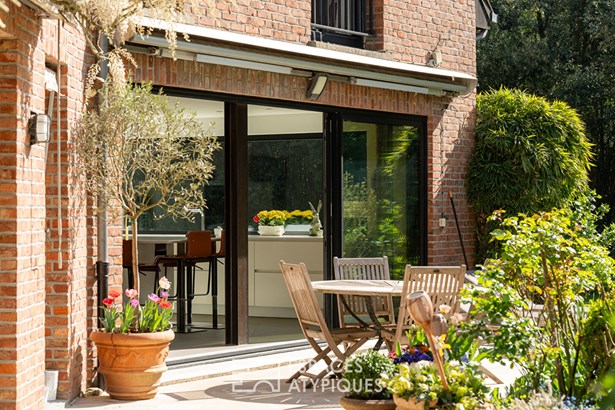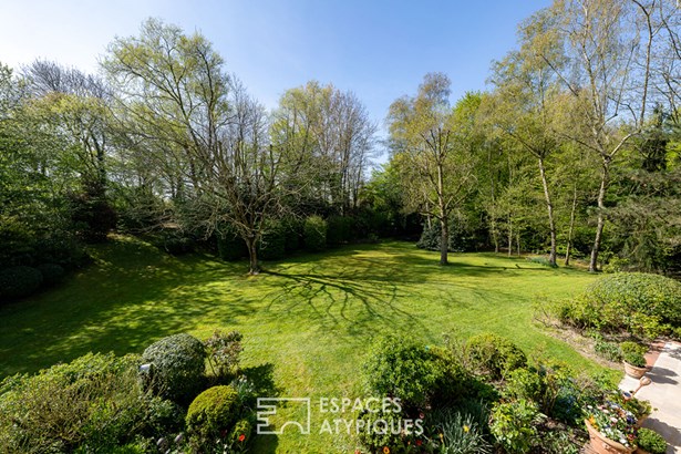 The numerous windows and bay windows provide exceptional brightness to the entire space as well as an incredible view of the landscaped garden.