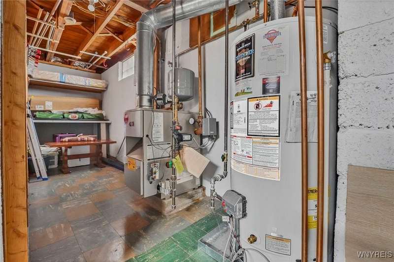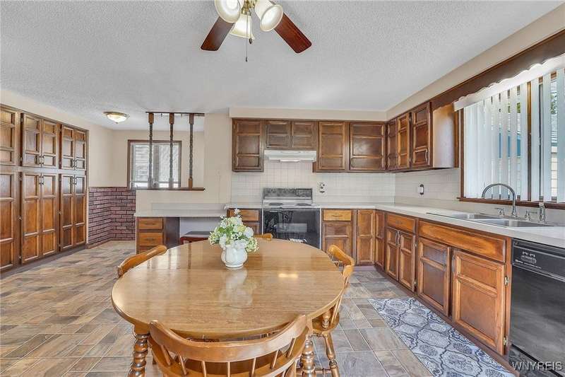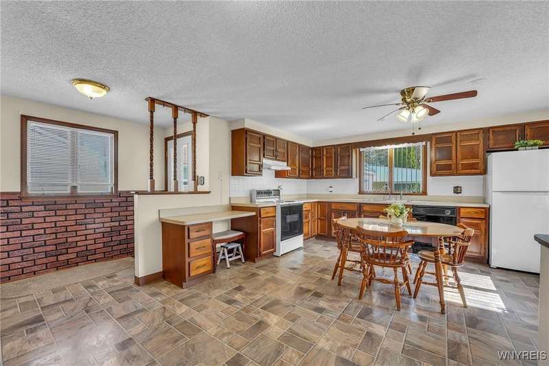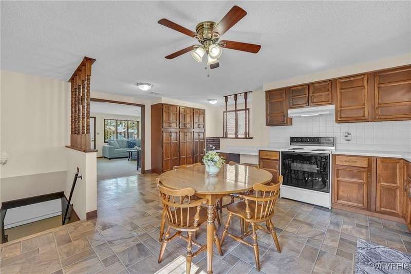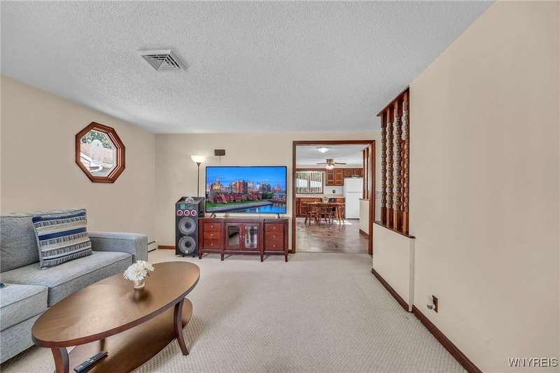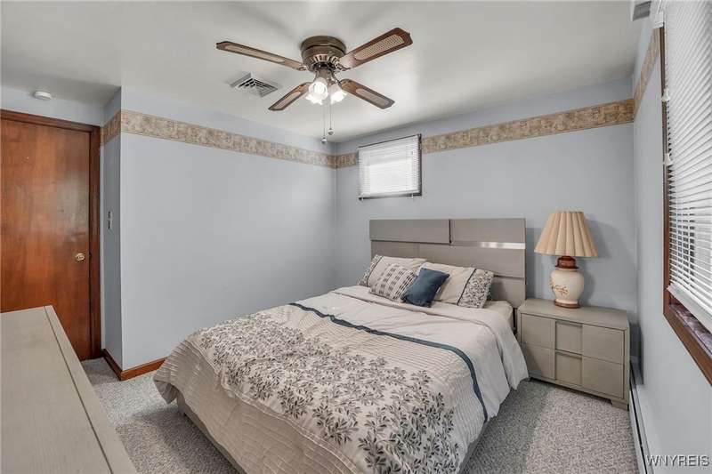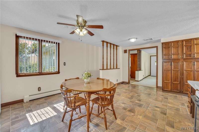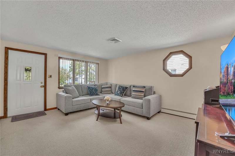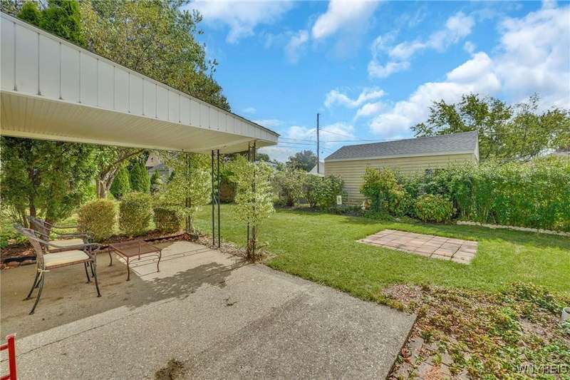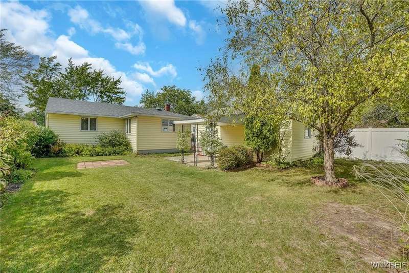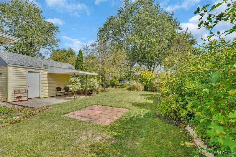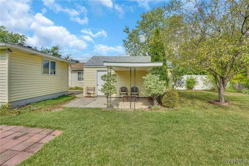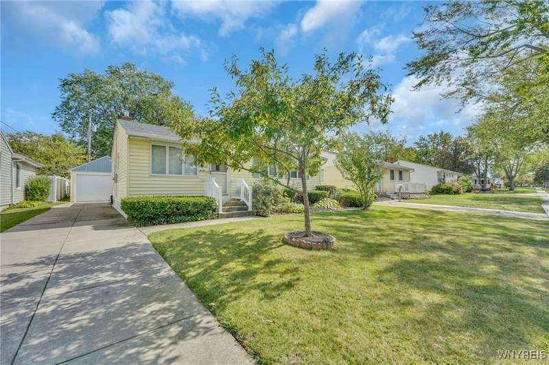 Welcome to 115 Wilmington Ave. This well-maintained, super-clean ranch in the Ken-Ton school district offers 3 bedrooms, 2 full baths, and a convenient single-level layout. The open kitchen with dining area flows into the living room, creating a comfortable space for both everyday living and entertaining. Additional features include central air, a spacious basement, and a one-car garage with storage. Outside, enjoy a fenced backyard with a covered patio and grill pad, perfect for relaxing or hosting. Conveniently located in a walkable neighborhood close to shopping, dining, and other amenities.