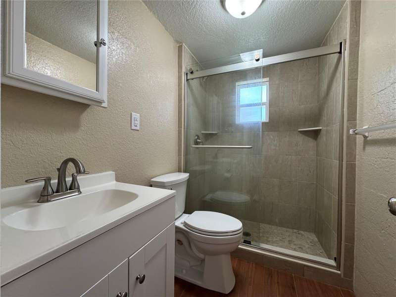 Recently remodeled 2/1 Duplex on quiet dead end street. Tiled flooring throughout and Ceiling fan over the living room. Kitchen has white soft close cabinets and drawers. Bathroom has a shower with glass doors. Patio out back with washer and dryer connections.