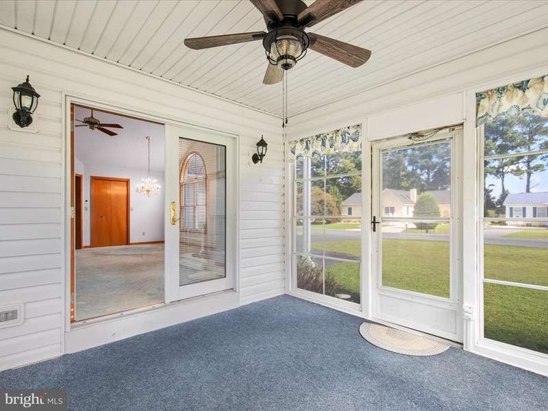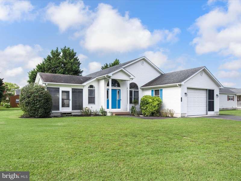Welcome to this charming 3-bedroom, 2-bath ranch-style home on a desirable corner lot just minutes from the Delaware beaches. Featuring a brand-new roof, this spacious single-level home offers peace of mind and lasting value. The open layout includes vaulted ceilings, a bright dining room, a large living room, and a family room with a cozy pellet stove adjoining the kitchen-perfect for everyday living and entertaining. The primary suite features a relaxing jacuzzi tub and separate shower. Enjoy multiple bonus living spaces including a Florida room, a three-season room, and a dedicated hot tub room that opens to a composite deck for seamless indoor-outdoor living. The oversized garage offers shelving, a heater, a utility kitchen, and full upper-level storage. Additional highlights include a whole-house vacuum system, outdoor shower, and off-season boat parking. With no HOA fees and a prime location near beaches, golf, shopping, and dining, this well-maintained home offers the perfect coastal lifestyle.