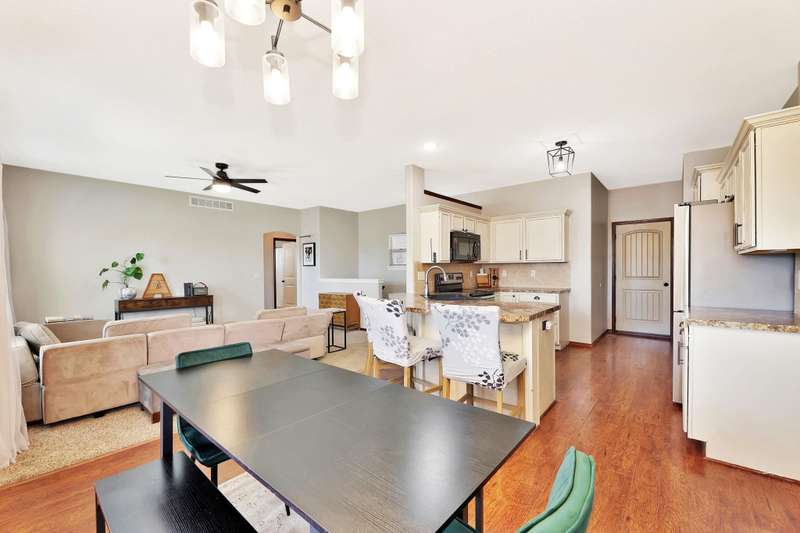 Welcome to this well maintained four-bedroom, three-bath ranch-style home, perfectly situated on a quiet cul-de-sac in the highly sought-after Meadowlark/Andover Central school district. From the moment you step inside, youll appreciate the inviting neutral palette, open-concept layout, and desirable split-bedroom design. The spacious kitchen offers an eating bar, walk-in pantry, and plenty of cabinet spaceideal for both everyday living and entertaining. The primary suite includes dual sinks, a tub/shower combo, and a generous walk-in closet. Two additional main-level bedrooms, a full hall bath, convenient main-floor laundry, and multiple storage closets round out the main floor. Downstairs, the finished basement offers a large family room perfect for relaxing or recreation, along with a fourth bedroom, third full bath, bonus room, and a sizable storage area. Step outside to enjoy the extended patio and fully fenced backyardcomplete with a basketball pad and goal. Plus, rest easy knowing the home features new roof installed in 2022. Dont miss your opportunity to own this wonderful homecall today to schedule your private showing today.