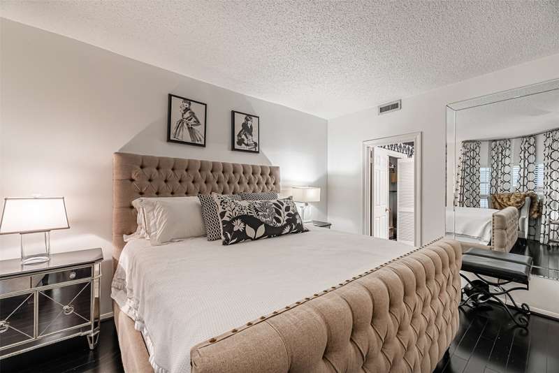 Look no further for your urban escape at this stunning 2-bedroom, 2-bathroom condo located on the 4th floor at Woodway Atrium Condominiums. This residence captures the chic, sophisticated, and lively vibe of city living, tailored for someone who loves style, culture, and the excitement of metropolitan life. Complete with an indoor balcony, sleek finishes, designer touches, and custom draperies throughout. Each bedroom is a private retreat, with one ensuite and the other with a separate full bathroom. Outside, relax in the stunning resort-style pool, perfect for entertaining or unwinding. Hit the courts at your very own private tennis court along with a fitness room. 24 hour concierge and covered garage parking to make you feel extra secure when coming home! The Tanglewood Park and dog park are located right across the street. Located in a prime area close to dining and entertainment, this property offers both style and convenience. Your chic oasis is ready for you immediately!