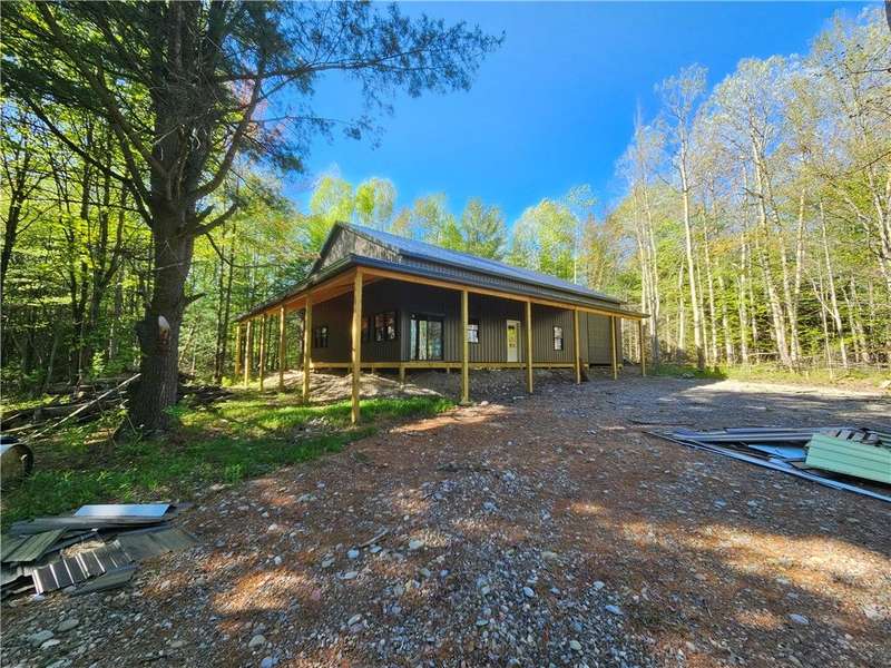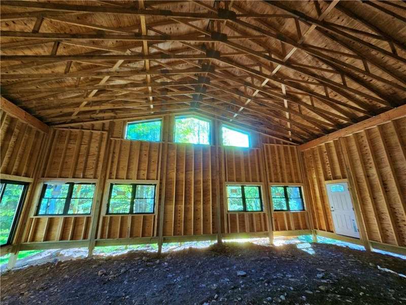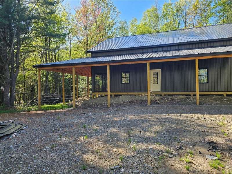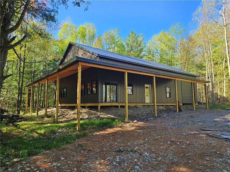 Step back into yesteryear with quieter days at this country retreat. Enjoy the surrounding area's traditional farms and scenic countryside. Populated by working farms and wooded properties, you can escape the hustle and bustle here without being too far removed from civilization. Just up the road is Prattsburgh, NY proper with groceries, post office, the school, and more. 20 minutes to Hammondsport,NY on Keuka Lake. 30 minutes to Naples on Canandaigua Lake. NYSEG electric and high speed internet service is available here at the road. This custom Barndominium style structure is waiting for your personal finishes. This is a brand new 40 ft x 60 ft ( 2,400 SQ FT of enclosed interior floor space ) "weathertight" shell with an unfinished interior. Existing architectural building plans allow you to complete the existing plan or modify it to suit your needs. Plans currently include 2 bedrooms, open living areas and a loft above for future living space or possibly a 3rd bedroom. TRANQUIL SETTING lets you see the final vision. The topography of the lot would easily allow for a large pond in front of the home's exterior wrap around porch. Wooded areas maintain your privacy and block you from the road. There is plenty of land to explore. The property can used as a second home, primary residence, or vacation rental once completed. Recreationalists and hunters welcome. BUILT RIGHT: you will appreciate the work done to date and the quality of the work and materials. Perk test analysis completed, septic plans will be provided by the seller. Survey completed in 2024.Come explore all the Finger Lakes Region has to offer. If you need a day on the lake, a short drive gives you freshwater boating, fishing and fun !! THE PROPERTY IS A 15 ACRE PARCEL IN THE NW CORNER OF RIDGE ROAD AND BULL HILL ROAD. SIGNS ARE ON BOTH BULL HILL ROAD AND RIDGE ROAD. THE GATED DRIVEWAY ENTRANCE IS ON RIDGE ROAD. THE PROPERTY STREET ADDRESS IS ESTIMATED FOR LOCATION PURPOSES ONLY. A final house# & street address will be assigned by the town upon completion of the structure. You have dreamt of this home, it is here all ready for you to complete. Dreams come true.