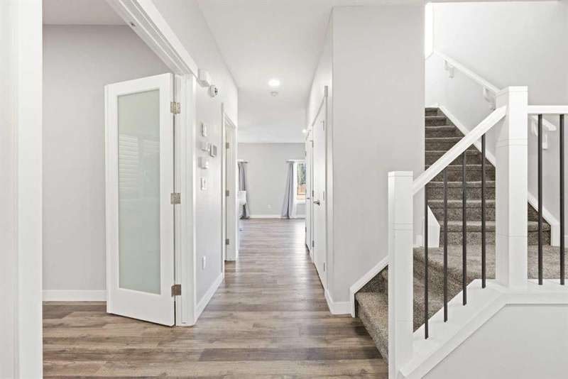 Welcome to this beautifully maintained 2020-built home in the family-friendly community of Edgefield, just steps away from George Freeman School (K–9) and a short walk to shopping, parks, and everyday conveniences. Step into a functional main floor office which is perfect for work-from-home or study, then move into the open living area with a cozy gas fireplace and kitchen with ample pantry storage. Upstairs, a central bonus room complements three bedrooms, including a master retreat featuring a spacious walk-in closet and spa-inspired ensuite with jetted tub, separate shower, and dual vanities. An upstairs laundry adds everyday convenience. The unfinished lower level is a clean slate. 9' ceilings, three egress windows, bathroom rough-in, and a side entrance. This setup offers a prime canvas for a future legal suite (subject to municipal permit approval) or additional development. Additional highlights: high-efficiency furnace, HRV system, LED lighting, and brand-new roof and gutters (2024). The double attached garage is fully insulated and includes a man door to the backyard. Outside, enjoy a fully insulated double attached garage with a man door to the backyard, and since the only attached portion between the sides of the duplex is the garage, you’ll appreciate the privacy and quiet of this semi-detached design. Major updates like a new roof and gutters (2024) give added peace of mind. Located in one of Strathmore’s most sought-after areas, this home offers unbeatable convenience: close to schools, parks, walking paths, and the Ranch Market Shopping Centre. Whether you’re a first-time buyer, growing family, or investor seeking suite potential, this property delivers modern style, efficiency, and value in a location that truly has it all. Don’t miss your chance to own in Edgefield! Homes like this are rarely available and sell quickly. Schedule your showing today!
