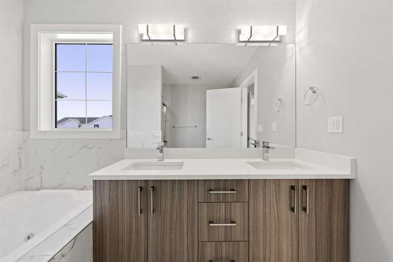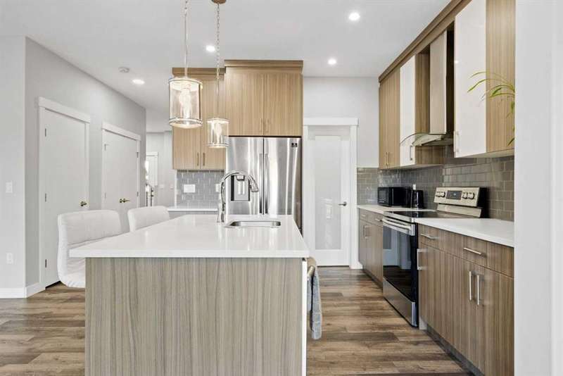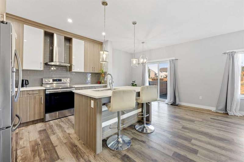 Welcome to this beautifully maintained 2020-built home in the family-friendly community of Edgefield, just steps away from George Freeman School (K–9) and a short walk to shopping, parks, and everyday conveniences. Step into a functional main floor office which is perfect for work-from-home or study, then move into the open living area with a cozy gas fireplace and kitchen with ample pantry storage. Upstairs, a central bonus room complements three bedrooms, including a master retreat featuring a spacious walk-in closet and spa-inspired ensuite with jetted tub, separate shower, and dual vanities. An upstairs laundry adds everyday convenience. The unfinished lower level is a clean slate. 9' ceilings, three egress windows, bathroom rough-in, and a side entrance. This setup offers a prime canvas for a future legal suite (subject to municipal permit approval) or additional development. Additional highlights: high-efficiency furnace, HRV system, LED lighting, and brand-new roof and gutters (2024). The double attached garage is fully insulated and includes a man door to the backyard. Outside, enjoy a fully insulated double attached garage with a man door to the backyard, and since the only attached portion between the sides of the duplex is the garage, you’ll appreciate the privacy and quiet of this semi-detached design. Major updates like a new roof and gutters (2024) give added peace of mind. Located in one of Strathmore’s most sought-after areas, this home offers unbeatable convenience: close to schools, parks, walking paths, and the Ranch Market Shopping Centre. Whether you’re a first-time buyer, growing family, or investor seeking suite potential, this property delivers modern style, efficiency, and value in a location that truly has it all. Don’t miss your chance to own in Edgefield! Homes like this are rarely available and sell quickly. Schedule your showing today!