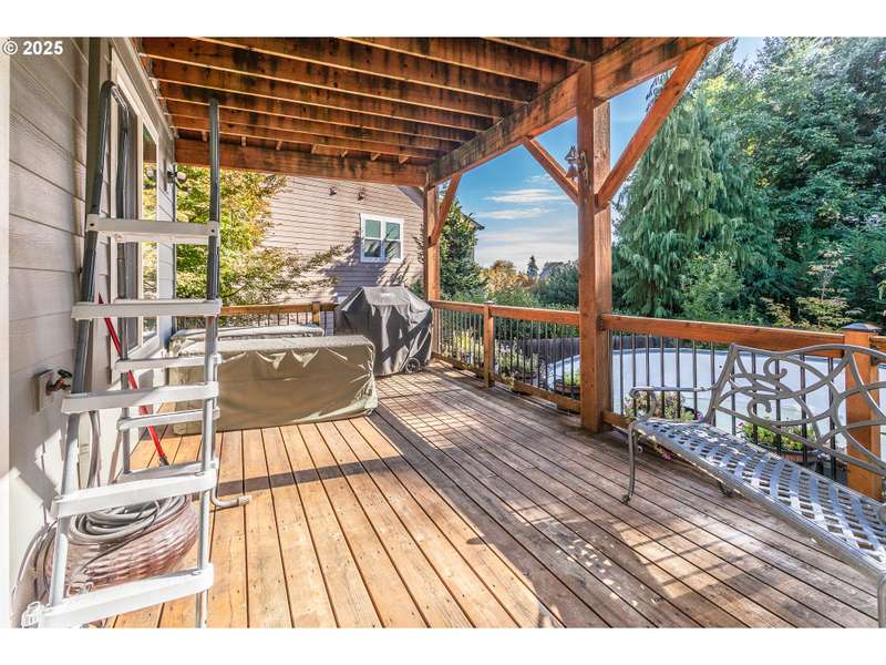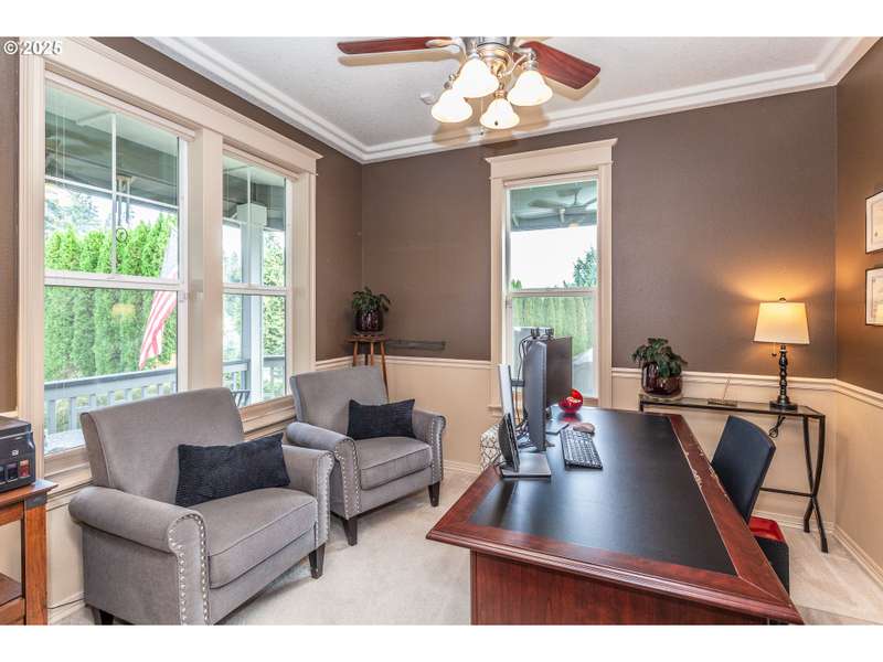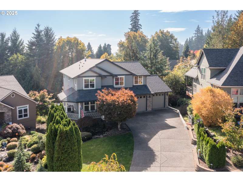 Stunning home in the heart of one of Scappoose's most desirable neighborhoods! Set in Columbia River View Estates, this 5 bedroom 3.5 bath home will amaze! With over 4200 sq. Feet, this home truly has it all. 4 bedrooms up, including a luxurious primary suite complete with vaulted ceilings, gas fireplace, walk in closet and jetted tub! 5th bedroom in daylight basement is perfect for guest room or multi-generational living. Gorgeous, gourmet kitchen, with granite counters, island, gas range, and pantry. The kitchen opens up into the light and bright living room, with gas fireplace and slider opening onto the upper deck with beautiful views of trees, Veterans Park, and ball fields. Main floor formal dining room with hardwood floors and classic wainscotting. 2 separate offices - one on the main floor with French doors, the second on the lower level. Downstairs family room is as good as good as it gets with gas fireplace, slider to second deck, and a bar with built in dishwasher, sink and refrigerator. Movie nights will better than ever in the separate family media room! Lower lever storage rooms are perfect flex space, and could be used as a hobby room, or additional office/work area. The grounds are an oasis, with fenced back yard, easy care landscaping, underground sprinkler, swimming pool, and greenspace/park views. Oversized, temperature controlled, 3 car garage with mini split for heating and cooling. So many updates, including new roof and gutters, newer furnace, AC, and newer exterior paint. This home truly has it all, this is a must see!