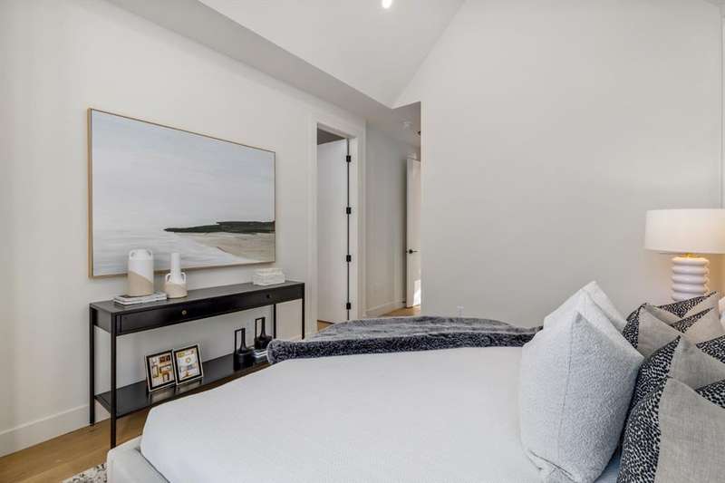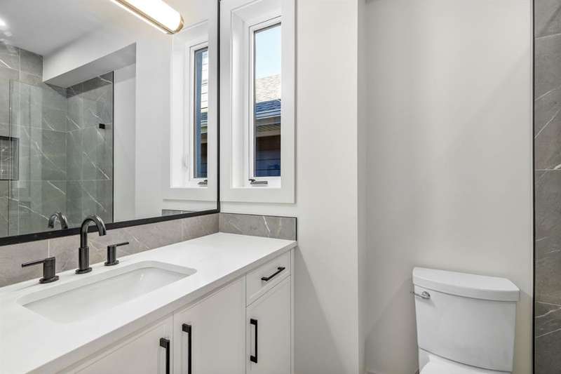 OPEN HOUSE Sat Nov 8 1-4PM, Sun Nov 9 11AM-1PM & 3-5PM! Experience elevated inner-city living with this impeccably designed, brand-new home nestled in one of Calgary’s most sought-after neighbourhoods: Hillhurst. Constructed by a trusted local builder known for craftsmanship, functionality, and aesthetic excellence, this 2-storey residence offers 2,224 SF above grade, with a fully developed basement, 4 bedrooms, and 4.5 bathrooms—a perfect blend of modern luxury and thoughtful detail. From the striking brick facade to the high-end engineered wide plank oak hardwood, every inch of this home exudes quality. The main floor welcomes you with a built-in entry feature and a front formal dining area, accented by elegant wall mouldings, white and gold sconces, and a designer chandelier. At the other end, an open-concept living room is a showstopper, featuring a large-format textured tile fireplace, custom built-ins with display lighting, and massive patio sliders leading to a west-facing, 135-ft deep backyard with a raised patio and gas line—ideal for indoor-outdoor entertaining. The chef’s kitchen is nothing short of stunning, complete with a 2.5" thick quartz island, panel-ready fridge/freezer with knurled handles, sleek quartz countertops, a gas range with pot filler, and backlit display cabinets framing the custom hood fan. You’ll also find a farmhouse sink, full slab backsplash, hidden coffee/appliance nook, built-in pantry, and a drawer-style microwave—each designed to inspire culinary creativity. Tucked behind a barn-style sliding door, the den offers a quiet workspace with a built-in desk, shelving, and bright window. The mudroom, also with a barn door, features tiled flooring, a built-in bench, and a large closet for seamless organization. Upstairs, each of the three spacious bedrooms come with walk-in closets and custom built-ins, along with private ensuites. The primary is sure to impress with vaulted ceilings, a LED-lit feature wall, statement gold light fixture, and a spa-inspired ensuite that boasts a steam shower, dual vanities, and a standalone soaker tub with dramatic black and white tile wall backdrop. A nearby laundry room offers convenience with a sink, folding station, shelving, and tile backsplash. The fully finished, carpeted basement, with 9-ft ceilings, is roughed in for in-floor heating and designed for comfort and versatility—featuring a spacious rec area, a TV wall with built-in components, a wet bar with lit display shelves and tile flooring, a full bath, and a large fourth bedroom with built-ins including a desk. An efficient mechanical room completes the lower level, with additional upgrades including solid core doors and built-in speakers throughout the entire home. Perfectly situated just steps from shops along 14 St NW and walking distance to Kensington Village, Calgary’s extensive river pathways, and the Downtown Core—this is urban luxury at its finest. Act now and make this exceptional Hillhurst property your forever home.