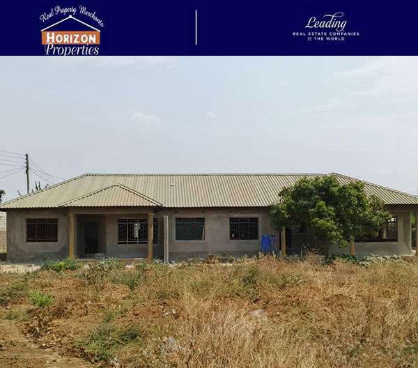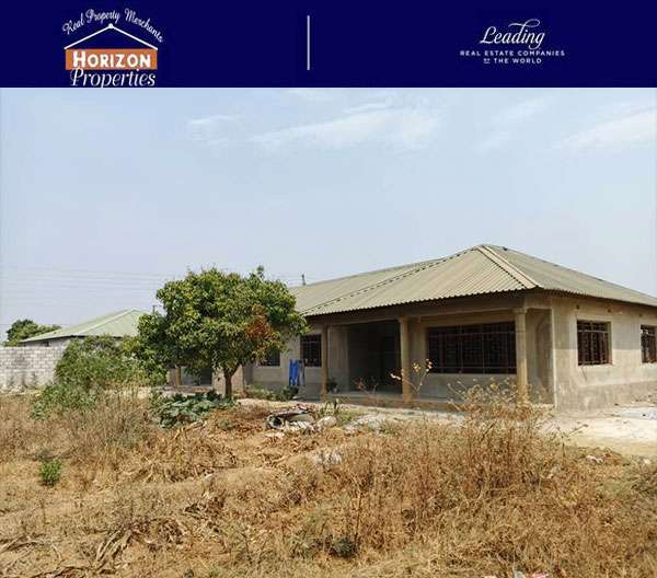 2×3-bedroom incomplete flats sitting on a 28×18 plot, located about 900 meters from the tarmac.