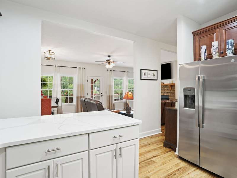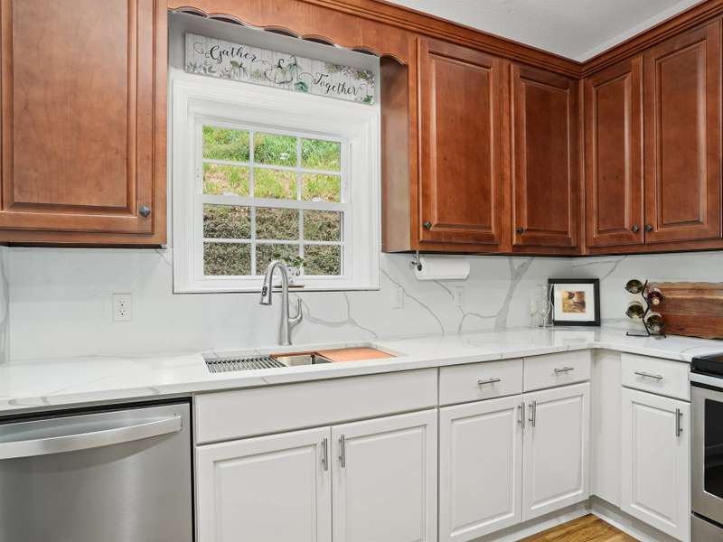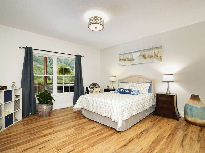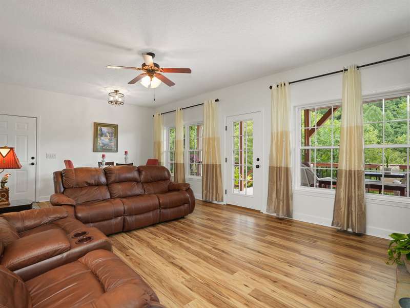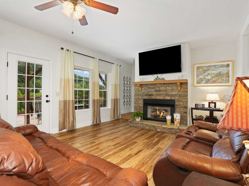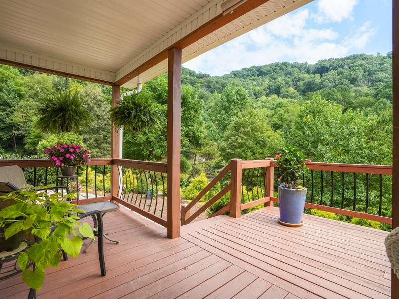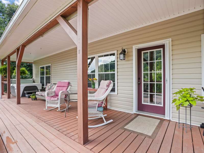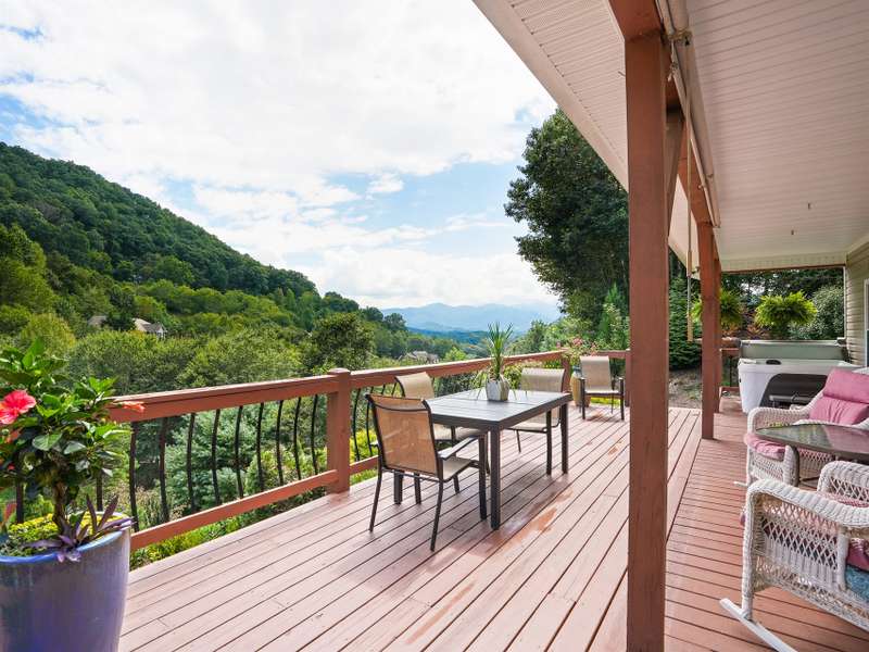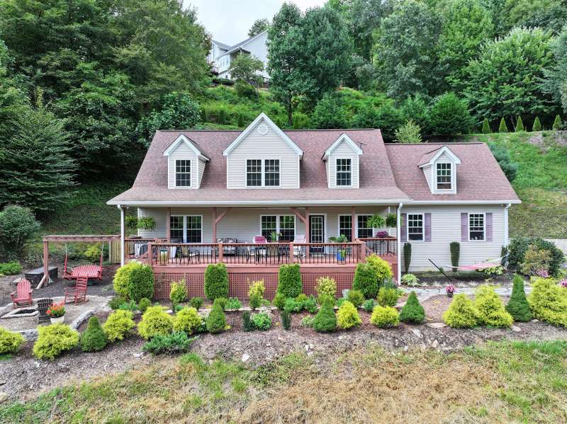 Nestled within the serene, gated enclave of Junaluska Highlands, this captivating Cape Cod-style home, built in 2013, offers an idyllic retreat on over 3 acres of lush, meticulously landscaped grounds. Located just 10 minutes from Waynesville's vibrant downtown, hospital, and shopping center, this residence seamlessly blends peaceful seclusion with convenient access to amenities, making it a perfect sanctuary for those seeking both tranquility and connectivity. The development's private, gated setting ensures privacy, while the expansive lot provides ample space to immerse yourself in the natural beauty of the surrounding Blue Ridge Mountains, with year-round, long-range views that captivate from every angle. Step through the front door into a thoughtfully designed main level, where an open floor plan creates a warm, inviting atmosphere. The great room, anchored by 9-foot ceilings, flows effortlessly into the dining area, fostering a sense of togetherness ideal for entertaining or quiet evenings at home. The gourmet kitchen is a chef's dream, featuring gleaming quartz countertops, a stylish tile backsplash, a spacious pantry, and a breakfast bar perfect for casual meals or morning coffee. Adjacent, a rear foyer leads to a well-appointed powder room with integrated laundry facilities, adding practicality to the home's elegant design. The main-level primary suite is a true retreat, boasting double vanities, generous dual walk-in closets, and a luxurious walk-in shower, offering a spa-like experience in the comfort of home. Ascend to the upper level, where spacious accommodations await. The en-suite bedroom features its own walk-in closet and a well-designed bathroom, ensuring comfort for guests or family. A versatile home office provides a quiet space for work or study, while a bonus room offers flexibility as a media room, playroom, or additional guest quarters. A dedicated guest bedroom further enhances the home's ability to host visitors with ease. Outside, the expansive front covered deck is a highlight, offering sweeping mountain views, a soothing hot tub, and a cozy outdoor fireplace?perfect for savoring crisp mountain evenings or hosting gatherings under the stars. The attached double-car garage provides ample storage and convenience, while a 7,500W Generac generator ensures uninterrupted comfort during any weather. With over 2,300 finished square feet, this home balances grandeur with intimacy, offering a harmonious blend of modern amenities and timeless charm. The surrounding landscape, thoughtfully curated, enhances the property's allure, creating a private oasis that feels both expansive and intimate. Whether you're drawn to the peaceful solitude of the gated community or the vibrant offerings of nearby Waynesville, this home delivers the best of both worlds. Imagine waking to the soft glow of sunrise over the mountains, sipping coffee on the deck, or unwinding in the hot tub as the stars emerge. This Holly Junaluska Highlands gem is more than a home?it's a lifestyle, ready for you to embrace. Schedule a private tour today to experience its charm firsthand.