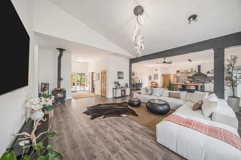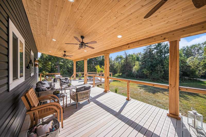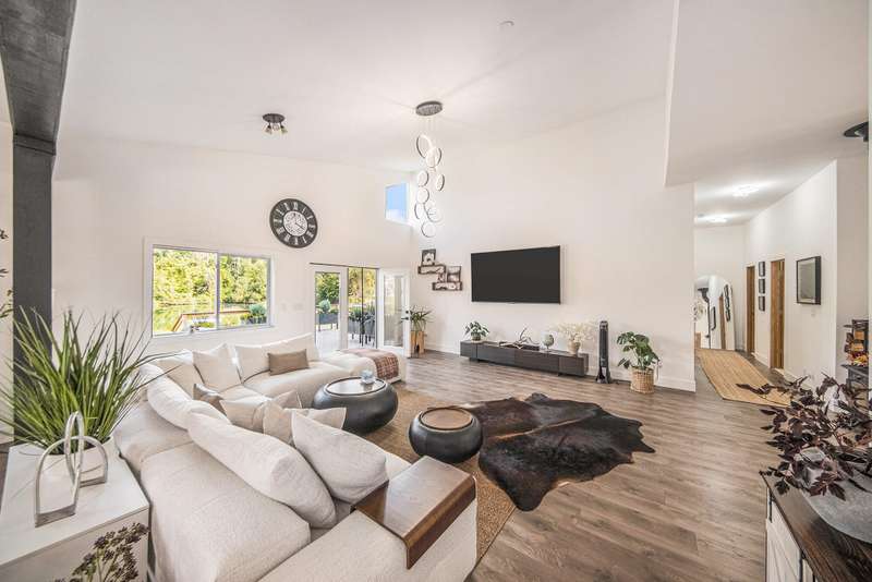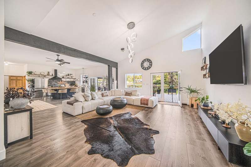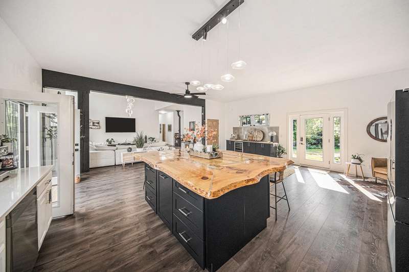 Welcome to a home where luxury meets lifestyle. This exceptional residence offers 3 spacious bedrooms and 2.5 designer bathrooms, combining timeless elegance with modern comfort. At the heart of the home lies a chef's dream kitchen, complete with a massive custom-built island, premium finishes, and a spacious butler's pantry with a second refrigerator, making it perfect for both entertaining and everyday living. The cathedral ceilings throughout create a bright, airy ambiance and enhance the home's grand, open feel. The primary suite is a true sanctuary, featuring a spa-inspired bathroom with floor-to-ceiling marble tile, delivering a sense of serene luxury. Car enthusiasts and hobbyists alike will appreciate the 3-car garage with extra-tall doors along with an RV power hook up, providing ample space for oversized vehicles, recreational toys, or a private workshop. Spend your mornings on the veranda enjoying the sunrise and evenings on the expansive deck watching the sunset. Ideal for entertaining friends and family with the outside custom kitchen, covered pergola and brand new vinyl awnings. Unwind in the private hot tub, complete with an outdoor shower, and experience resort-style living right in your own backyard. Every detail has been carefully curated, making this residence a rare opportunity to own a home that is as functional as it is breathtaking. Don't miss your chance to make this extraordinary home yours. Schedule a private showing today and experience the luxury for yourself!