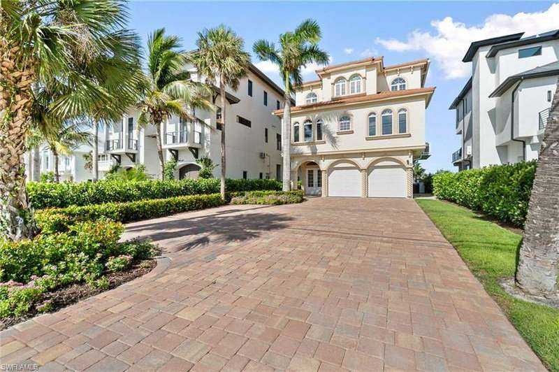 SPECTACULAR DIRECT BEACHFRONT, POOL HOME AVAILABLE ON BONITA BEACH! CURRENTLY THE LOWEST PRICED BEACHFRONT HOME FOR SALE ON THE ISLAND! Fantastic rental opportunity with an estimated potential rental income of nearly $500k per year (optional) & NO RENTAL RESTRICTIONS! Currently over 170k of rental income over the next 7 months. This spacious & bright home is an entertainer's dream with a fantastic open floor plan, 4 beds + office, 4 baths, dual laundry rooms located on the main level and upper level, and a pool/spa with a tanning shelf and water feature. Enjoy easy access to the beach, while also having a RARE fenced-in backyard that is perfect for pets or extra privacy! Fully pocketing sliders on the main level allow for seamless indoor/outdoor beachfront living. The expansive primary bedroom features a private balcony to enjoy spectacular sunsets, elegant tray ceilings, and an office with a wet bar, beverage cooler, and wine fridge. The spa-like primary bathroom offers an expansive walk-in shower, deep jacuzzi tub & dual-vanities. The open kitchen boasts professional grade appliances, granite counters & incredible Gulf views. Other features include a private elevator, 2018 roof, and 2021 HVAC. This perfectly located home is ready for you to add your touch to make it your perfect dream home on the beach. Close to several fantastic restaurants and only a 10-minute drive to Mercato and the Promenade, with Waterside Shops, Coconut Point, Naples 5th Ave, and the International Airport nearby. Enjoy the best of the best; all overlooking the stunning Gulf of Mexico.