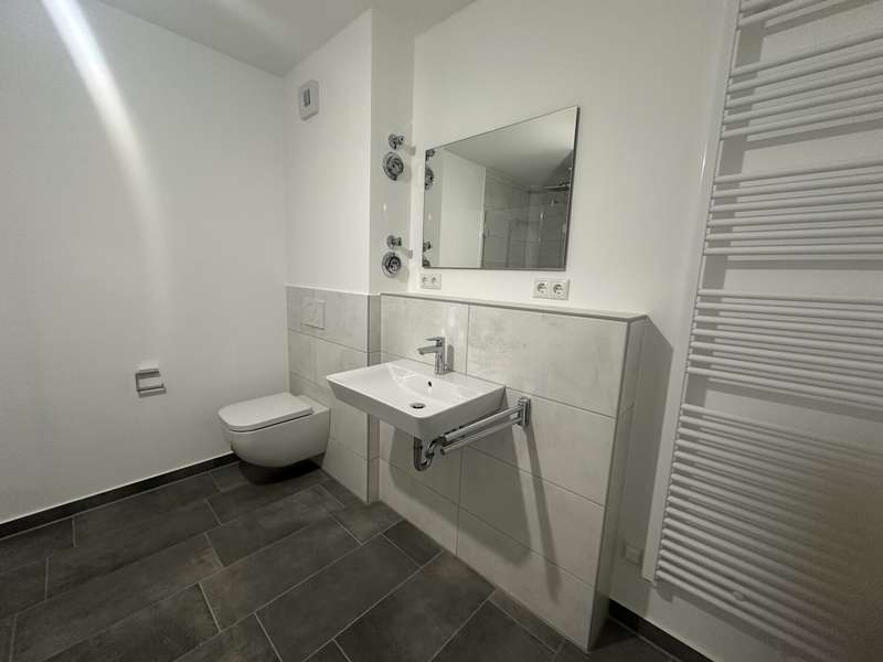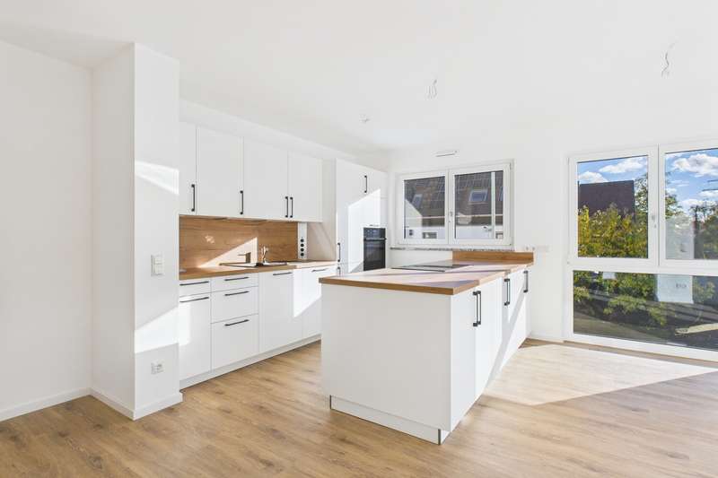 This modern new-build apartment in first-time occupancy promises a comfortable living experience in a contemporary ambience. Two spacious rooms are spread over around 79 m² of living space, offering plenty of natural light thanks to the large window fronts. The bright rooms create a pleasant living atmosphere that invites you to linger and are particularly spacious thanks to the open-plan design. A special feature of this apartment is the large balcony, which extends the living space to the outside and invites you to spend relaxing hours outdoors. The open-plan living and dining area is complemented by a high-quality fitted kitchen that blends harmoniously into the modern room concept and leaves nothing to be desired. The room layout has been optimized to ensure both comfort and functionality. The apartment will be available from 01.10.2025 and is ideal for anyone looking for a first-time occupancy in a quiet but well-connected location. It is located in a popular residential area that offers both the amenities of city life and the tranquillity of a secluded residential environment. Shopping facilities, restaurants and public transport links are just a few minutes' walk away, making the location particularly attractive for professionals, couples and those seeking peace and quiet. An underground parking space is available for an additional €100 per month and ideally rounds off the convenient overall offer of this high-quality new-build apartment. This apartment is an excellent choice for anyone who wants to combine modern living with a stylish ambience and a practical location. We look forward to your inquiry!