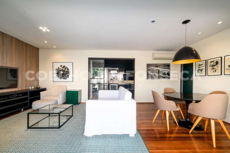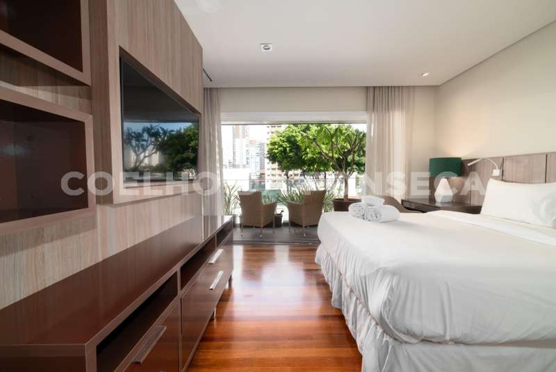 Apartamento no bairro Vila Olímpia com 95m² área privativa/útil, 1 dormitório(s), 1 suíte(s), 2 vaga(s), 1 banheiro(s), terraço, mobiliado (a), ar condicionado, reformado (a).