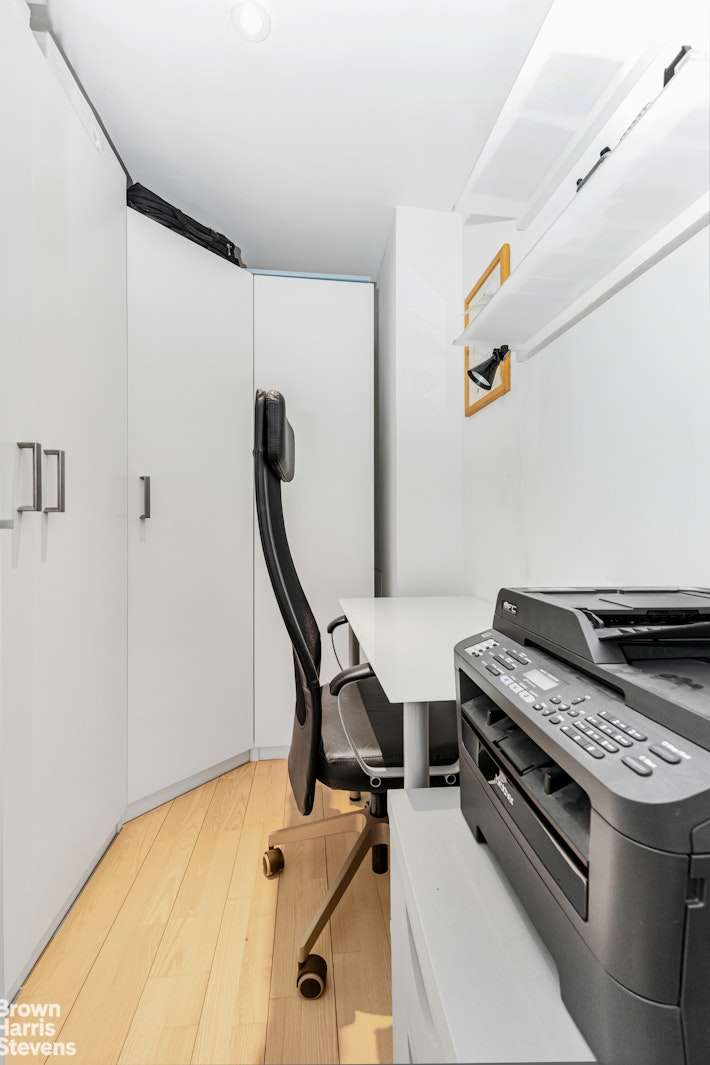 6. Home Office Space: The walk-in closet transformed into a home office provides a practical solution for anyone needing a professional workspace at home, essential for remote work or personal projects.