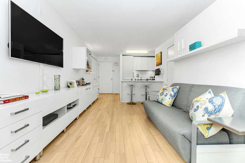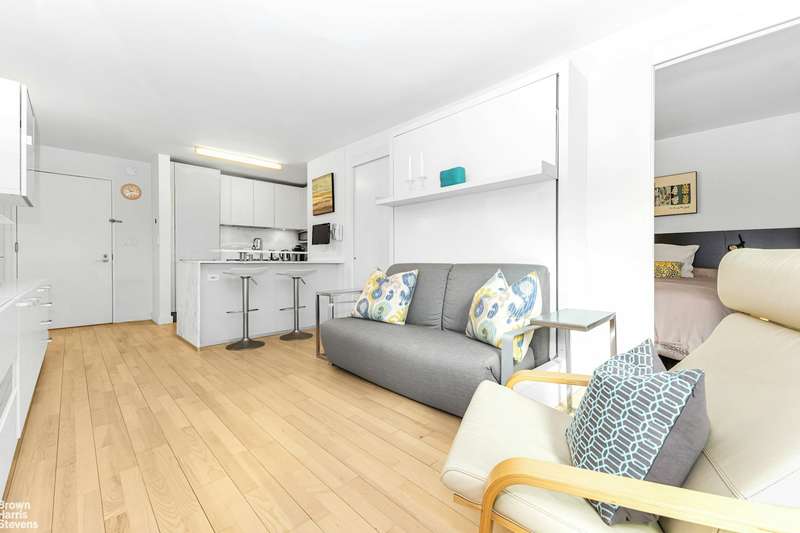 1. Elegant Design: The apartment's design maximizes space without compromising on style or functionality. With features like a Murphy bed, foldable tables, and custom cabinetry, every square inch is utilized efficiently.