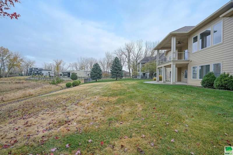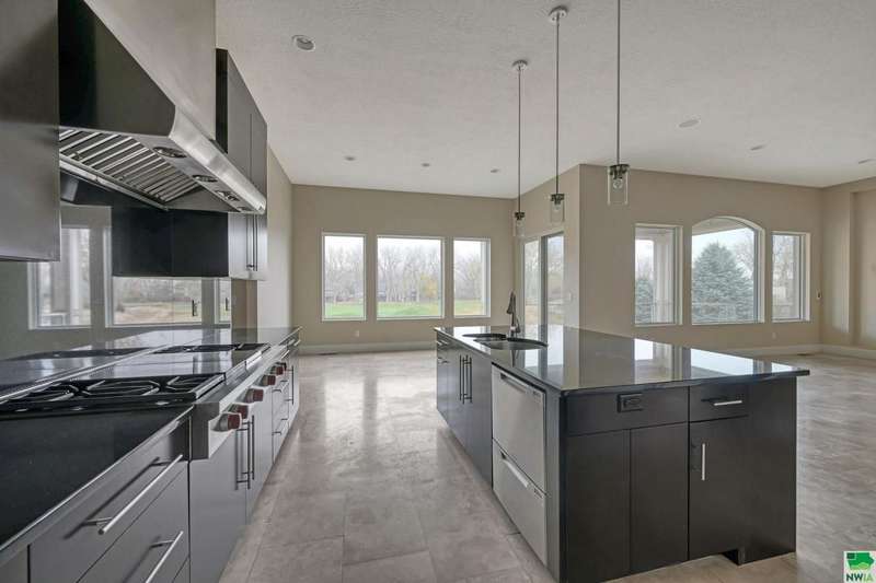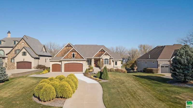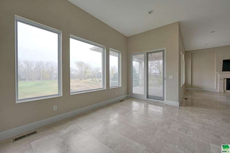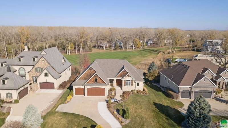 Step into a lifestyle of luxury and comfort in this exquisite contemporary~style home, boasting a prime location with unparalleled scenic views. This residence offers a seamless open~concept design accentuated by a covered deck that invites the beauty of the outdoors inside. The heart of the home features a gourmet kitchen equipped with a top~of~the~line four~burner Wolf stove, Sub~Zero refrigerator, and elegant granite countertops, butlers pantry, An inviting breakfast bar and a cozy eating area with a slider open onto the covered deck, perfect for alfresco dining and entertaining. Relax in the spacious living room, where a modern gas fireplace and expansive windows frame spectacular views. The adjacent dining room and a well~appointed den provide additional space for relaxation and entertainment. A convenient main floor laundry room includes a sink and ample cabinetry, enhancing functionality. Living spaces include two well~sized bedrooms and a luxurious master suite complete with a walk~in closet, a spa~like walk~in shower, and a soothing tub. All designed to provide a serene retreat after a long day. The semi~finished basement offers potential for customization with rooms already sheet rocked, perfect for future expansion. It features a walk~out access and is prepped to become additional living space, a home gym, or a media room. Additional highlights of this stunning home include Geo~thermal heating, elegant Travertine tile flooring, and premium Hunter Douglas blinds, New shingles 3 years ago, located on the 9th fairway of Dakota Dunes Golf Course, Geo Thermal heating the average utilities are 120 per month. Don`t miss the opportunity to own this superbly designed home that combines style, comfort, and a touch of luxury. Schedule your viewing today and experience living at its finest!!!