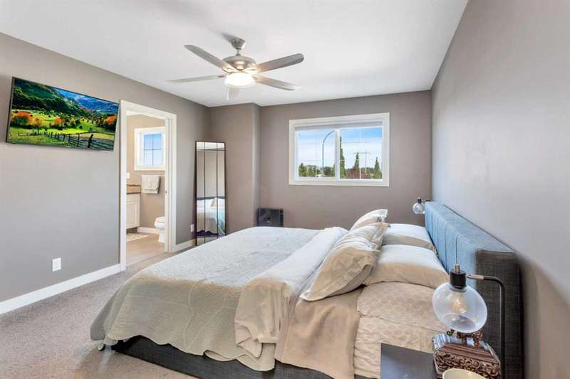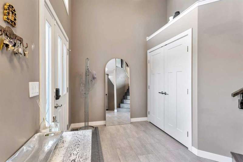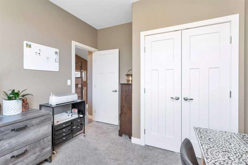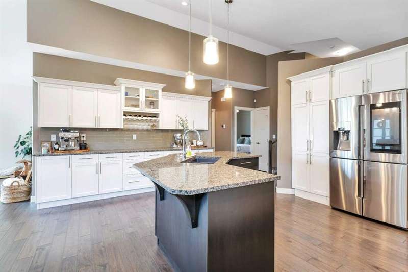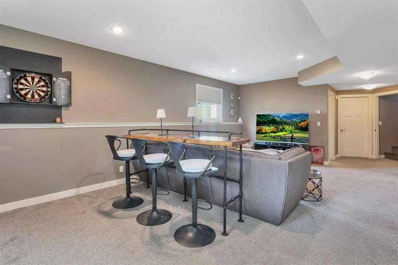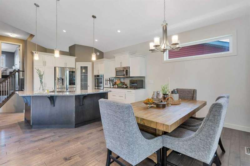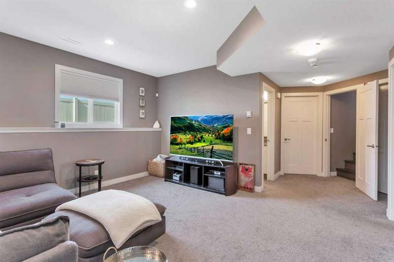 22 Coachill is the full package! This wonderful fully finished family home has it all and so much to offer any buyer. The grand entrance is modern yet simple spacious and sophisticated. The main level has a open concept with gorgeous dark engineered hardwood carrying throughout. The kitchen is simply a dream come true for anyone with the classic white oak cabinetry with soft close drawers, beautiful granite countertops which are also present in every bathroom and a walk-in pantry as a added bonus. You will get your techy and futuristic vibes with a state of the art "Smart" Fridge and beautiful appliances. Two generous sized bedrooms/office accompany the main level and the huge master bedroom is located on the upper level. The basement is fully finished with a 4th bedroom, full bathroom and a well designed family room/rec room/ gym area whatever your heart desires. Never worry about not being cozy and comfortable, both central air as well as underfloor heat are features of the house to help you have that perfect feel in the home. Now let's talk about the triple car garage that is fully finished with shelving, cabinets and front and back garage doors for easy movement if doing work in the garage. As impressive as the house is, the yard is equally gorgeous and one of a kind! Enjoy the south facing private backyard from your incredible sunroom. Underground sprinklers keep the yard green and fresh nearly all year round. Permanent LED lighting installed on the front of the home with over 250 different settings will keep you festive for every holiday...or hockey game! This stunner is located perfect and offers so much to all types of buyers!