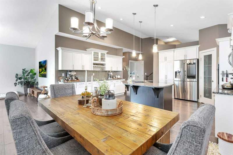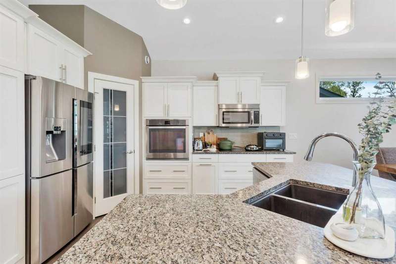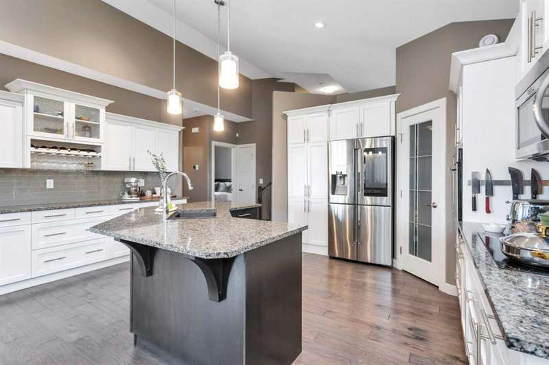 22 Coachill is the full package! This wonderful fully finished family home has it all and so much to offer any buyer. The grand entrance is modern yet simple spacious and sophisticated. The main level has a open concept with gorgeous dark engineered hardwood carrying throughout. The kitchen is simply a dream come true for anyone with the classic white oak cabinetry with soft close drawers, beautiful granite countertops which are also present in every bathroom and a walk-in pantry as a added bonus. You will get your techy and futuristic vibes with a state of the art "Smart" Fridge and beautiful appliances. Two generous sized bedrooms/office accompany the main level and the huge master bedroom is located on the upper level. The basement is fully finished with a 4th bedroom, full bathroom and a well designed family room/rec room/ gym area whatever your heart desires. Never worry about not being cozy and comfortable, both central air as well as underfloor heat are features of the house to help you have that perfect feel in the home. Now let's talk about the triple car garage that is fully finished with shelving, cabinets and front and back garage doors for easy movement if doing work in the garage. As impressive as the house is, the yard is equally gorgeous and one of a kind! Enjoy the south facing private backyard from your incredible sunroom. Underground sprinklers keep the yard green and fresh nearly all year round. Permanent LED lighting installed on the front of the home with over 250 different settings will keep you festive for every holiday...or hockey game! This stunner is located perfect and offers so much to all types of buyers!