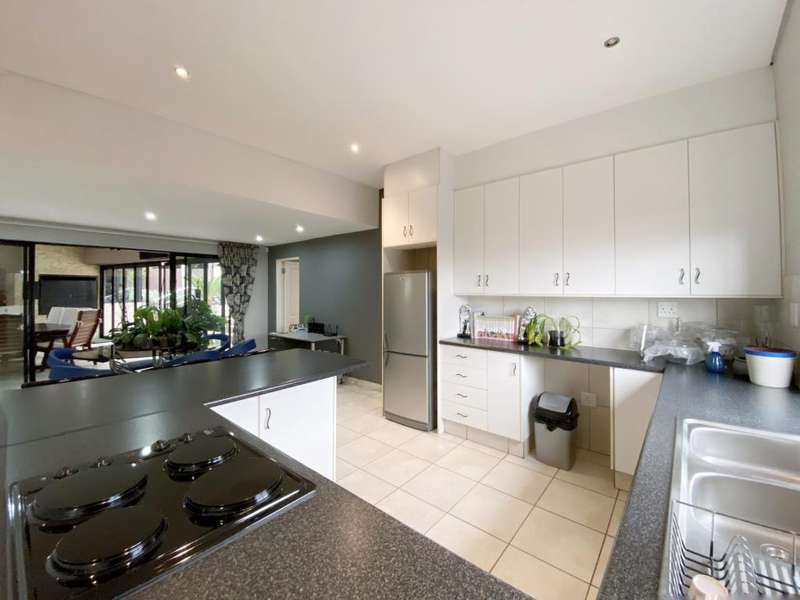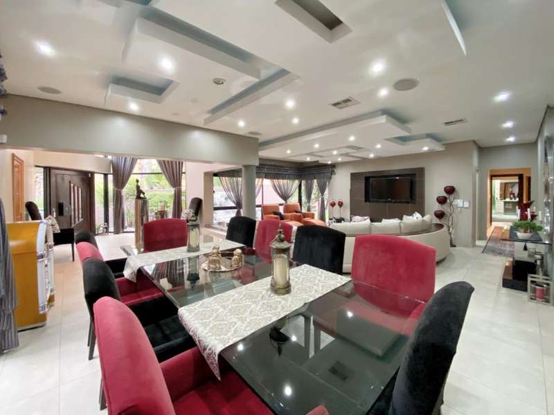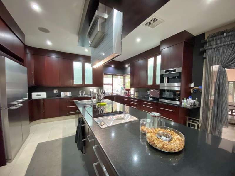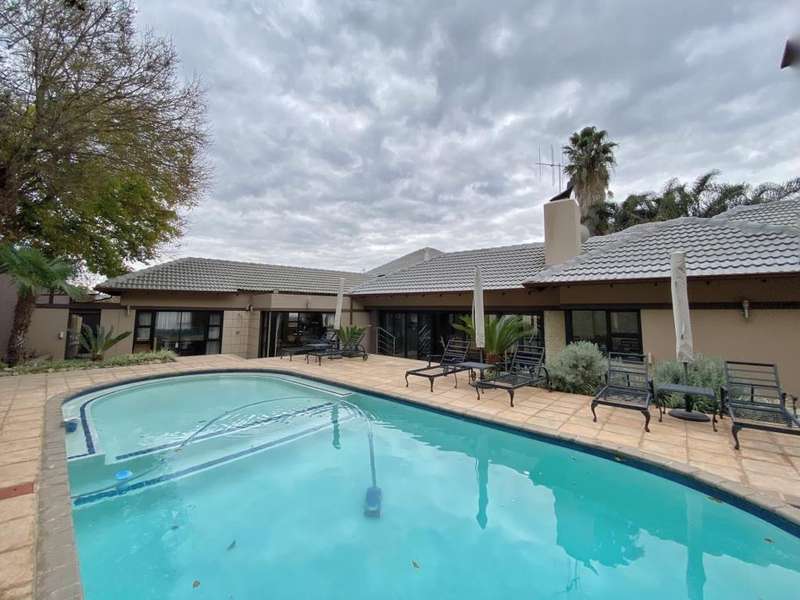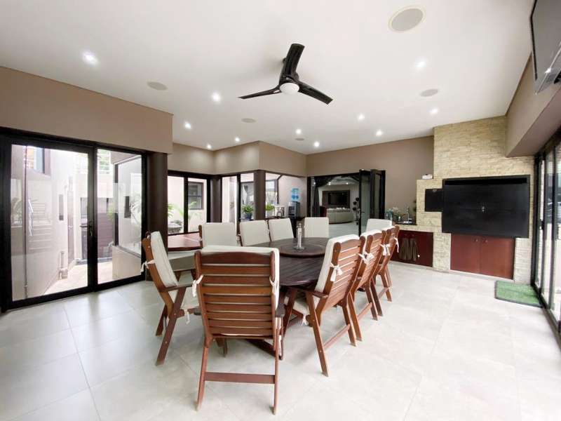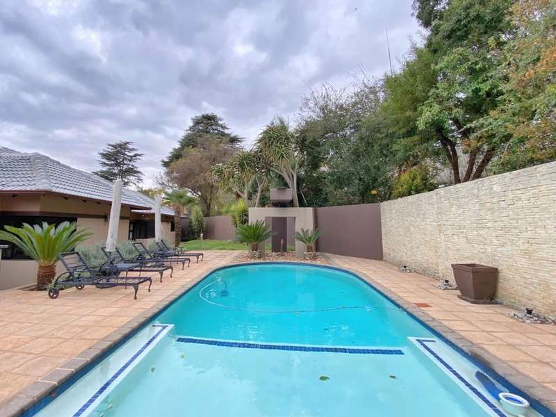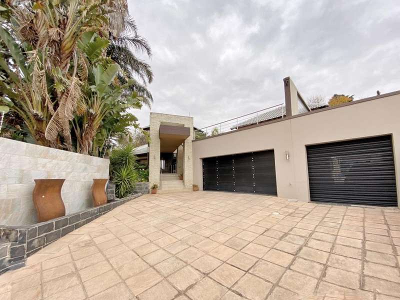 ALL OFFERS TO BE NEGOTIATED UNTIL SOLD! Set on manicured, tranquil surrounds with a sparkling pool can be found this bright, modern home boasting refined finishes throughout. Welcome upmarket living with a double volume entrance leading onto an open plan lounge and dining area flowing effortlessly onto the Mahogany kitchen. The kitchen forms the heart of this home and is complimented with quartz tops, chrome finishes, built-in appliances including oven, microwave and coffee machine, and a generous separate scullery. The enclosed patio further enhances the entertainment features of this home with a built-in braai and Jacuzzi. There is enough space for a large patio table and leads onto the outdoor area offering complete privacy and low maintenance surrounds. The 3 bedrooms feature high quality finishes and are all en suite. The main bedroom offers an additional lounge area with fireplace for those Winter nights. There are 2 self-contained flatlets linking to the main home which each provide a lounge/dining area, kitchen, bedroom and bathroom. With additional features such as staff accommodation, automated garages for 2 cars, covered parking for 2 cars PLUS open parking for up to 8 cars and excellent security?Ǫthis truly is a must-see! Inviting offers from R6 000 000. Asking more.